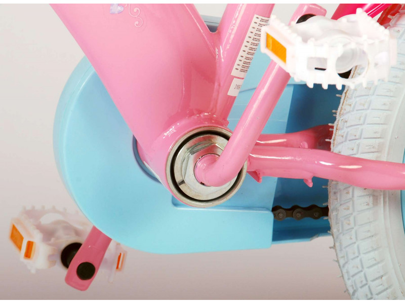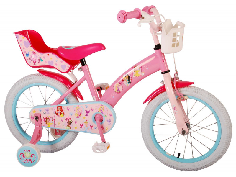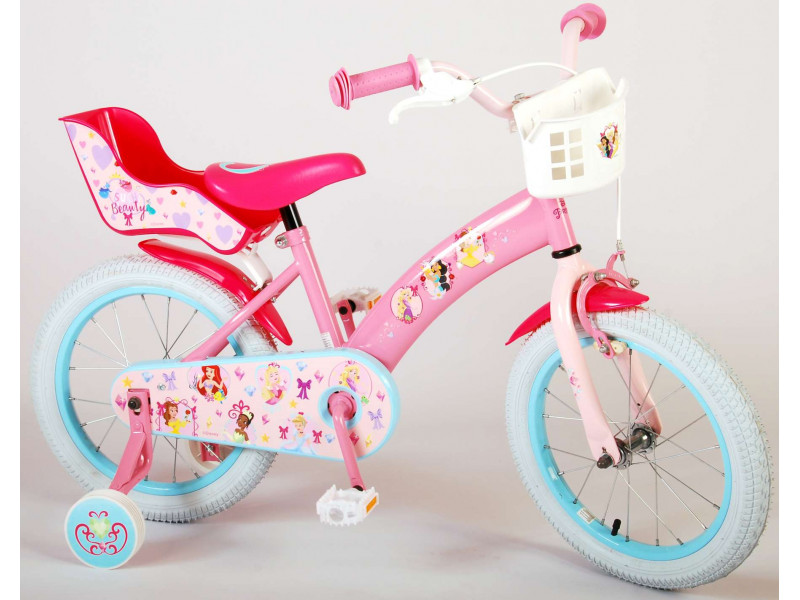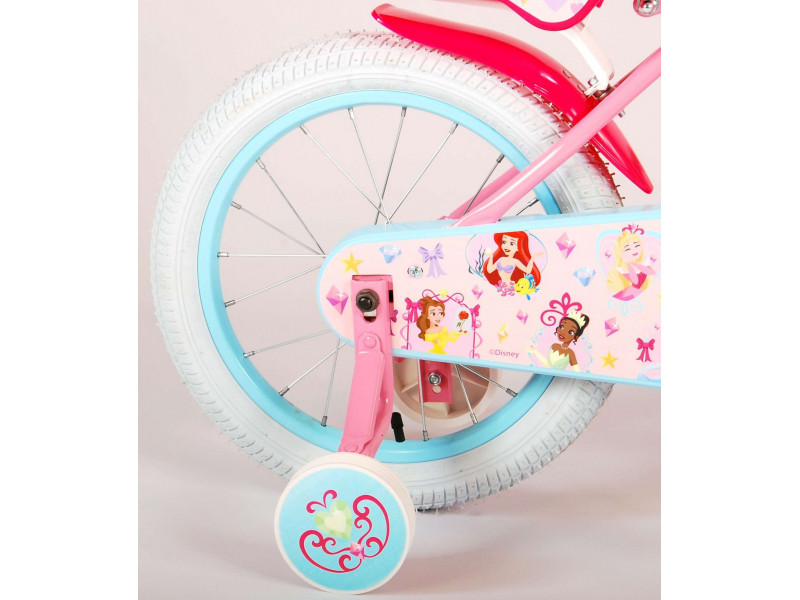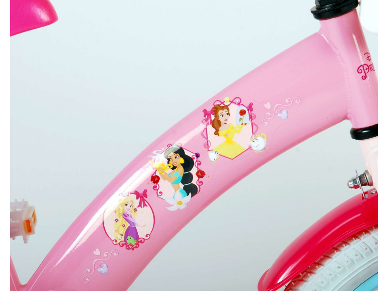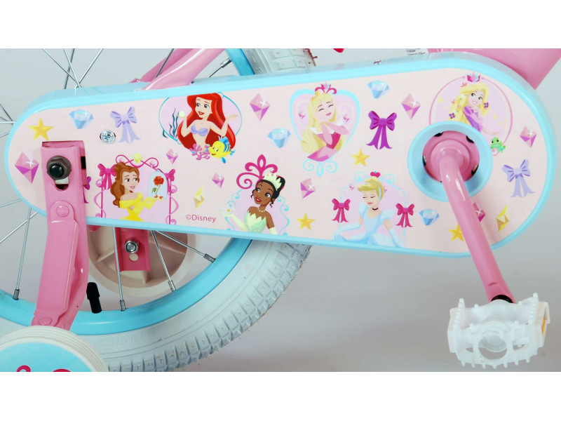 Detský bicykel vyrobený špeciálne pre fanúšičky Disneyho princezien, vhodný pre deti vo veku od 4 do 6 rokov. z ocele, 14-palcovými oceľovými ráfikmi s nafukovacími plášťami, blatníkmi, sedačkou pre bábiku a predným košíkom. Kolo disponuje nožnou protismernou brzdou v kombinácii s prednou čeľusťovou (ručnou) brzdou. dieťaťu umožní postupne si zvyknúť na brzdenie ručnými brzdami , čo príde vhod pri neskoršom prechode na väčší bicykel. V začiatkoch dieťaťu pomôžu aj prídavné balančné kolieska. rozprávky Disney Princess. Kolo je opatrené všetkými potrebnými bezpečnostnými certifikátmi.