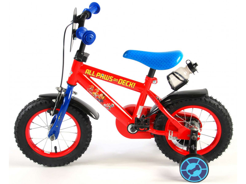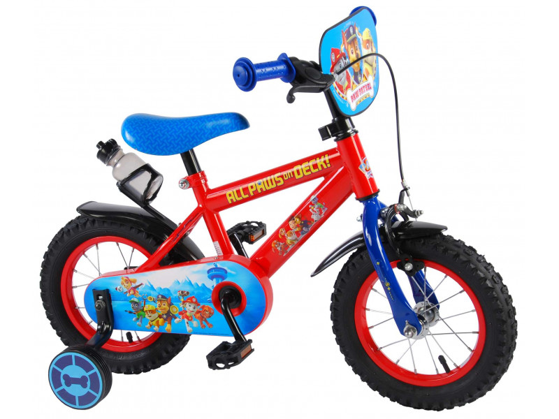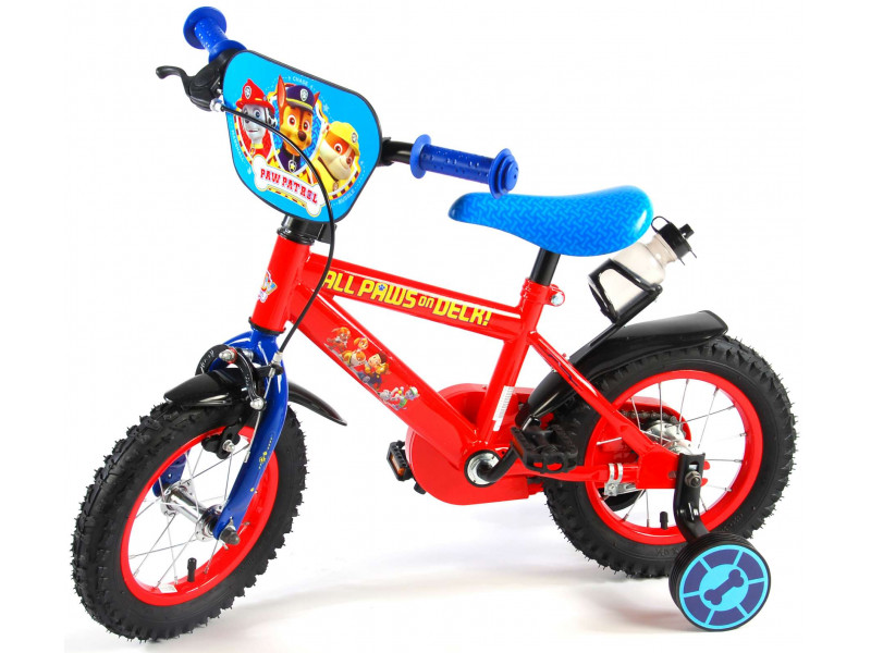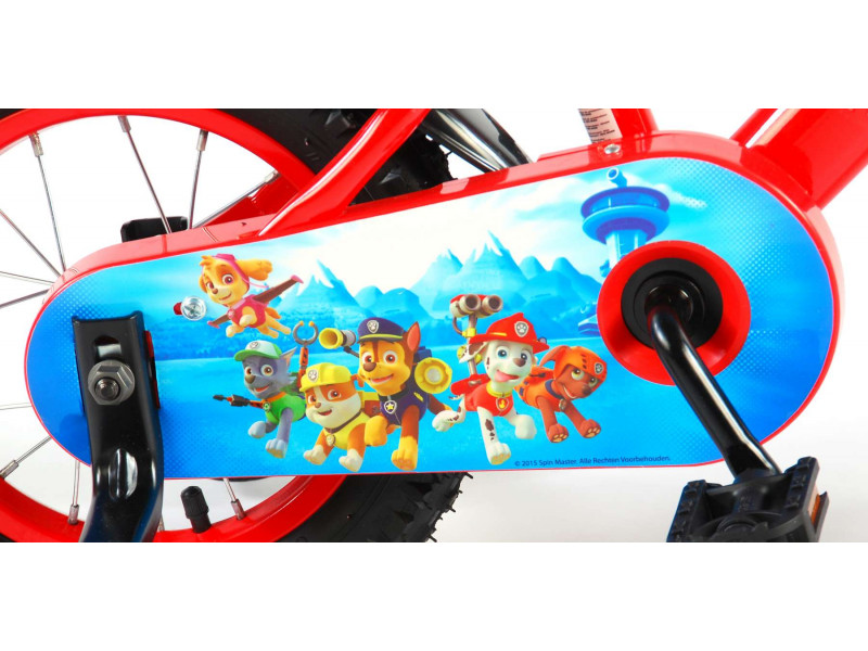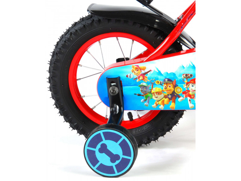 koleso 12 palcov, rám z ocele, oceľové ráfiky s nafukovacími plášťami, zadná protismerná brzda + predná čeľusťová (ručná) brzda, uzavretý kryt reťaze, balančné kolieska, držiak na pitie, vhodné pre deti od 3 do 4,5 rokov/s veľkosťou oblečenia 92-104, z 85 % zostavené, licencia Paw Patrol, červené/modré Celý popis