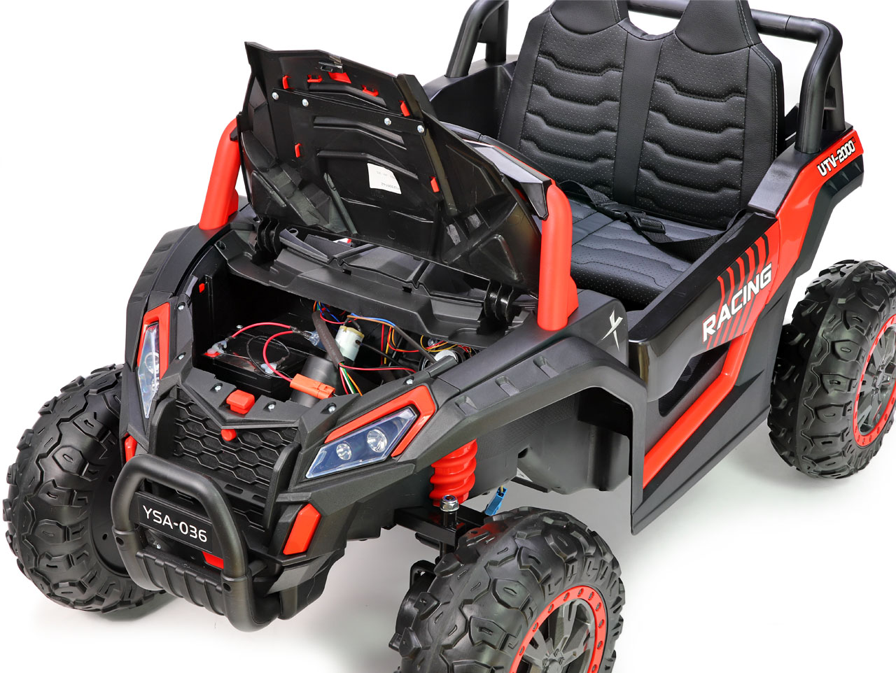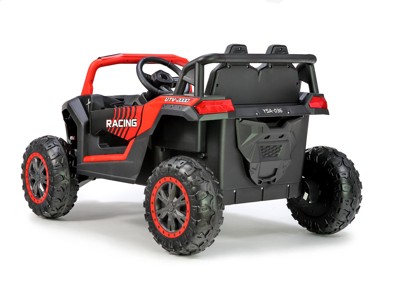 Detská bugína YSA-036 je naozaj jedinečný kúsok. Výbava buginy totiž zahŕňa celý rad pokročilých funkcií , aké by sme obvykle našli skôr pri drahších modeloch. Patrí k nim napríklad pohon všetkých kolies, slušná kapacita batérie (10 Ah, ampérhodín ), Bluetooth alebo EVA kolesa.
