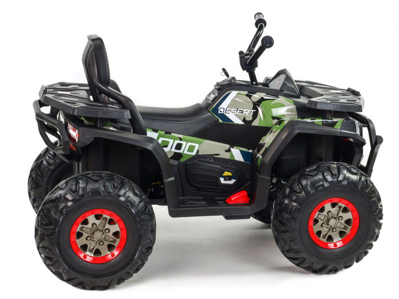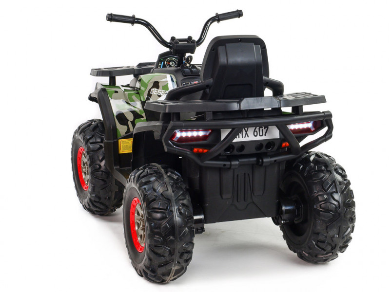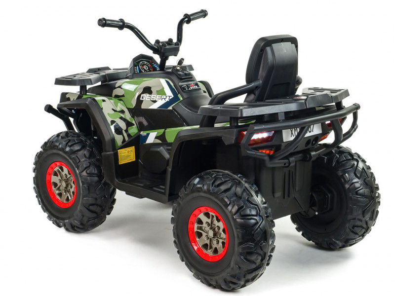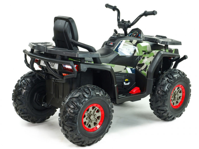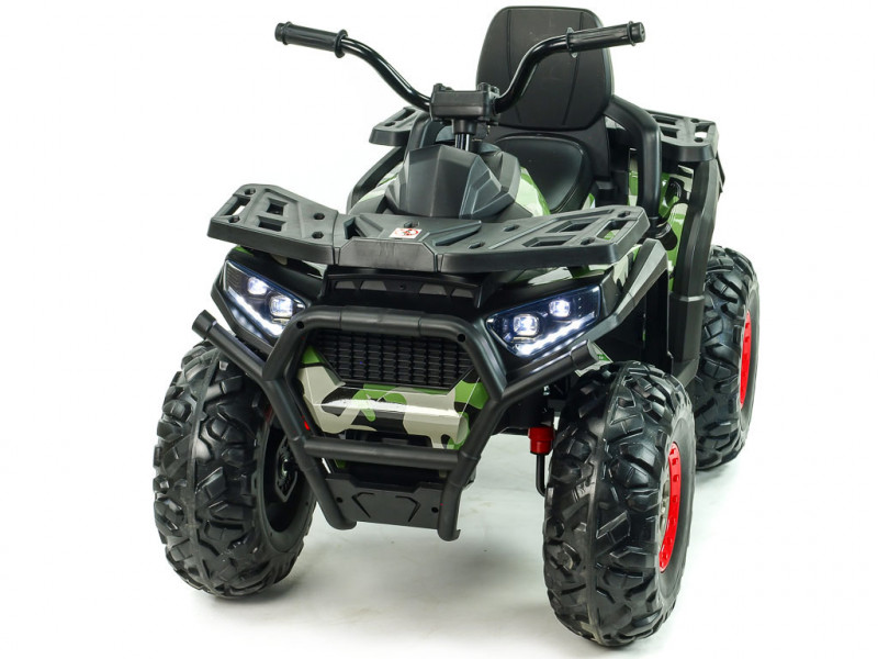 4 motory 12V/45W, 2 batérie 12V/7Ah, pohon všetkých kolies, 2.4G diaľkové ovládanie, 2 rýchlosti na manuál / 3 na diaľkové ovládanie, plynulé rozjazdy, AUX, USB, SD karta, predné a zadné LED svetlá, zvukové efekty, EVA kolesá, polstrované sedadlo, odpruženie zadnej nápravy, ukazovateľ stavu batérie, štartovacie kľúčiky, nosnosť až 50 kg, povrchová úprava Celý popis