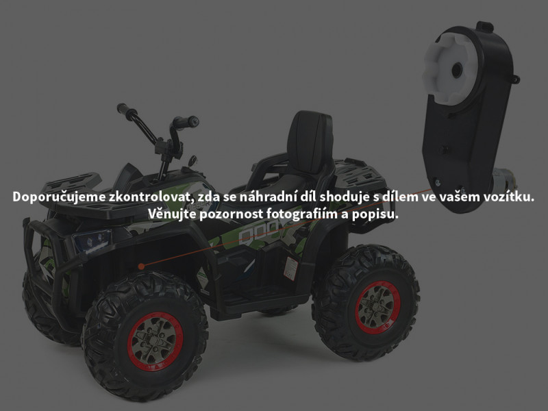 Náhradný elektrický motor s prevodovkou je určený pre detskú elektrickú štvorkolku X-MAX 607 a slúži na ovládanie riadidiel pomocou diaľkového ovládača. Motor s prevodovkou je možné nasadiť na os s priemerom 10 mm.