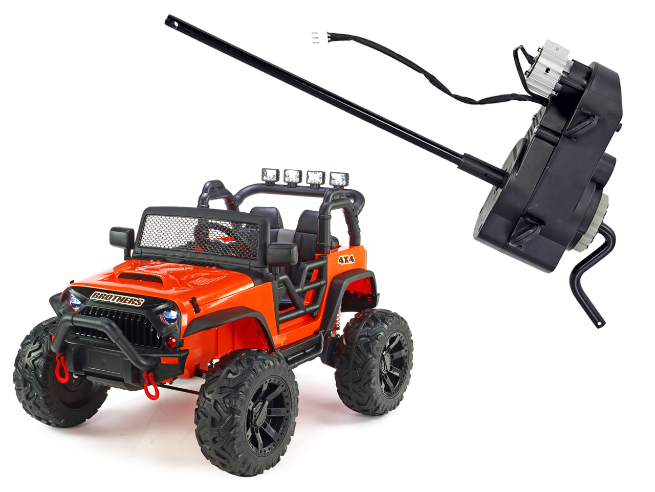Náhradný elektrický motor s prevodovkou je určený pre detsky elektrické teréniak Brothers 24V (model číslo 20710666). Slúži na ovládanie volantu pomocou diaľkového ovládača. Motor s prevodovkou je možné nasadiť na os s priemerom 10 mm.