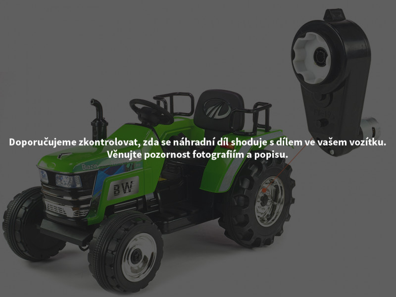 Náhradný elektrický motor s prevodovkou je určený pre detský elektrický traktor Big Farm a slúži na pohon kolies. Motor s prevodovkou je možné nasadiť na os s priemerom 12 mm.