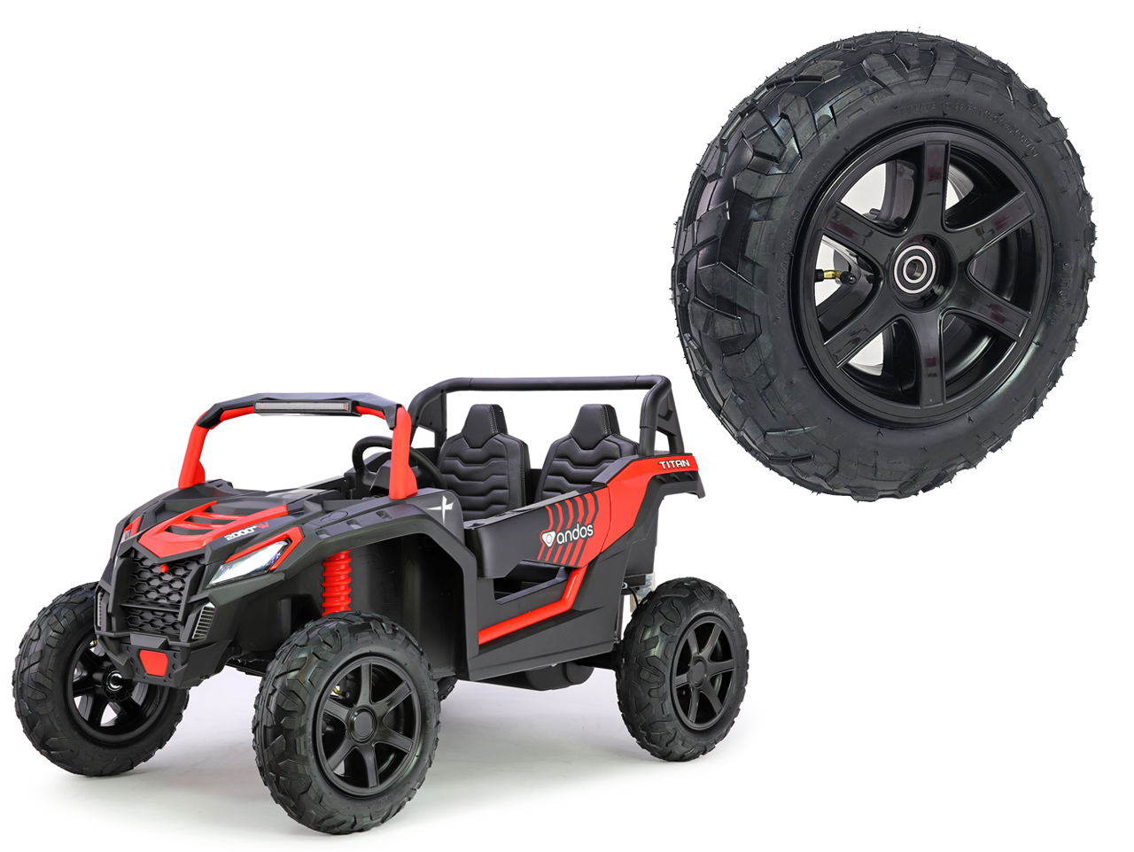 Určené pre detskú elektrickú buginu andos® Titan XXL PRO 24V/180W (model č. A032-PRO). Koleso je univerzálny, možno teda použiť na ktorúkoľvek stranu. Vyrobené z gumového materiálu. Priemer 400 mm, šírka 120 mm, je možné nasadiť na os s priemerom 77 mm. Celý popis