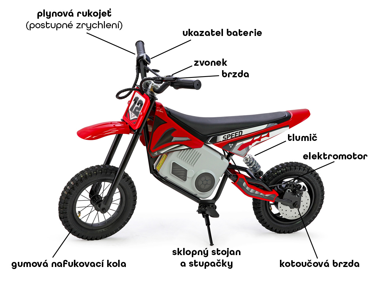 Deti môžu ľahko sklopiť stojan a motorku nechať stáť zaparkovanú.