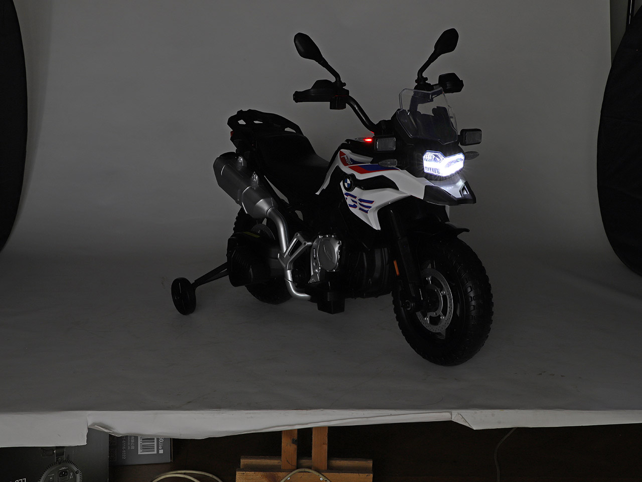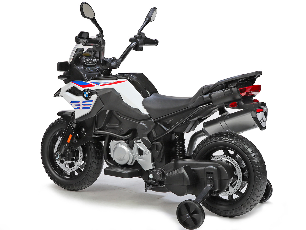zostavené | 2x motor 12V/45W, 1x batéria 12V/7Ah, obojstranný pohon zadného kolesa, 1 rýchlosť, jazda iba vpred, plastová sedačka, EVA kolesá, vstupy USB a AUX, zvukové efekty, klaksón, LED svetlo, prídavné balančné kolieska, stojan na parkovanie , licencia BMW Celý popis