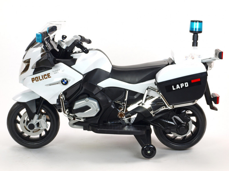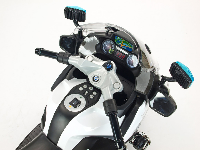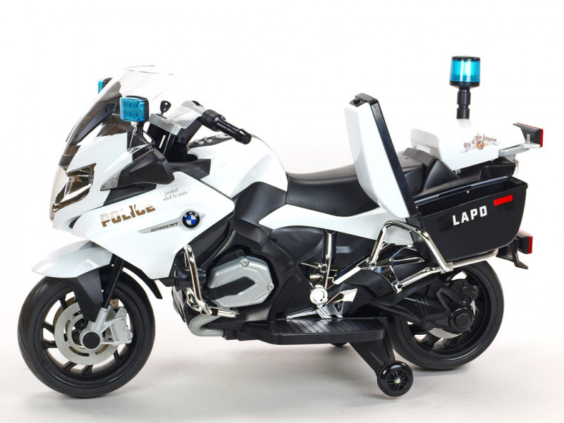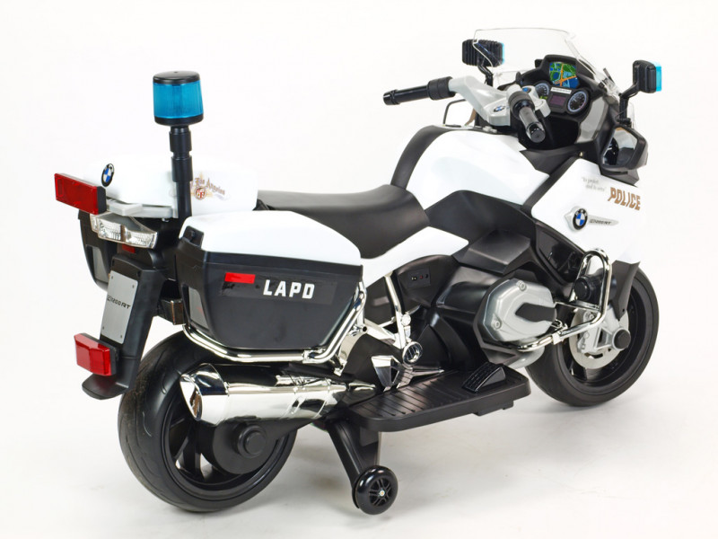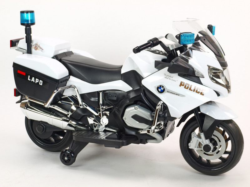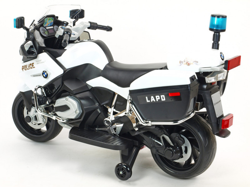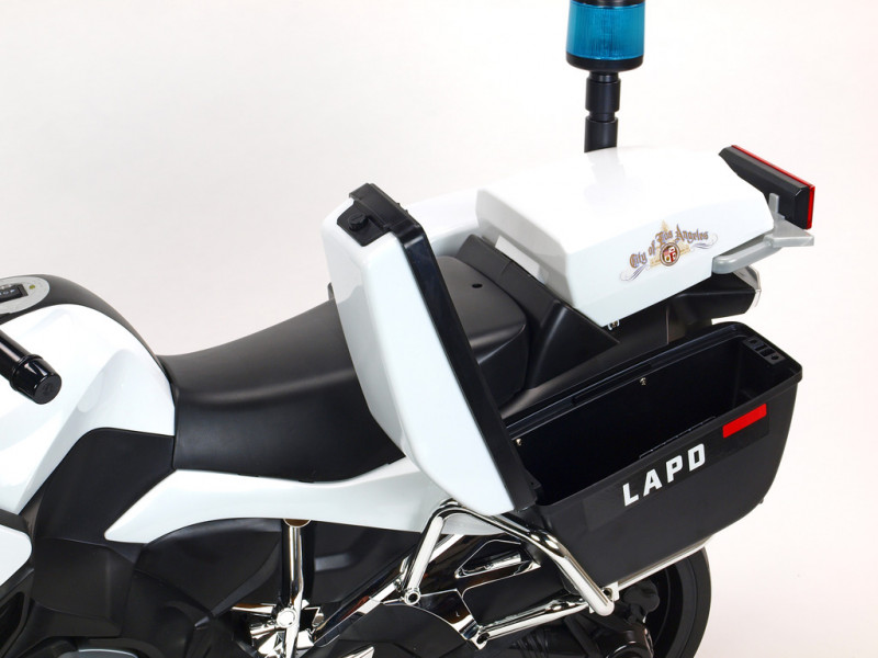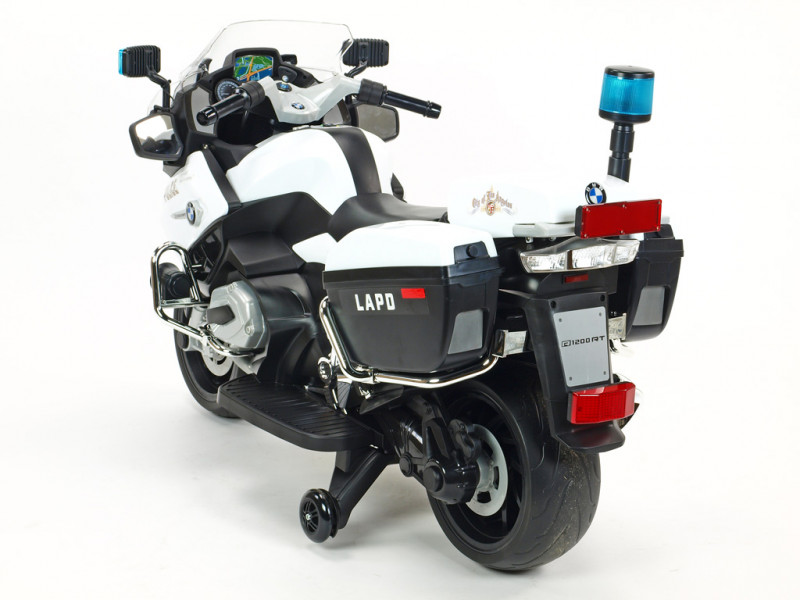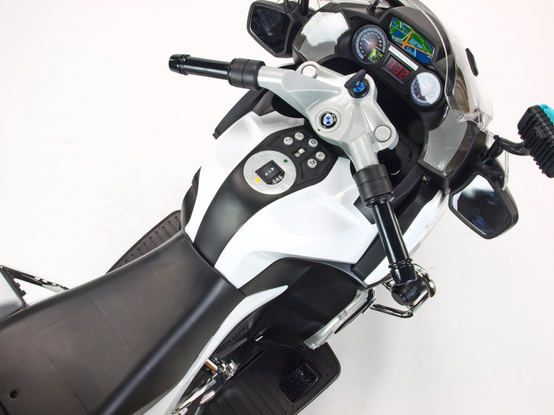 motor 12V/45W, batéria 12V/7Ah, 3 rýchlosti vpred a 1 vzad, svietiace predné svetlo, svietiace policajné majáky na spätných zrkadlách a zadnom kufríku, osvetlené palubné prístroje, zvukové efekty, klaksón, siréna, voltmeter, otvárateľné , EVA kolesá, licencia BMW Celý popis