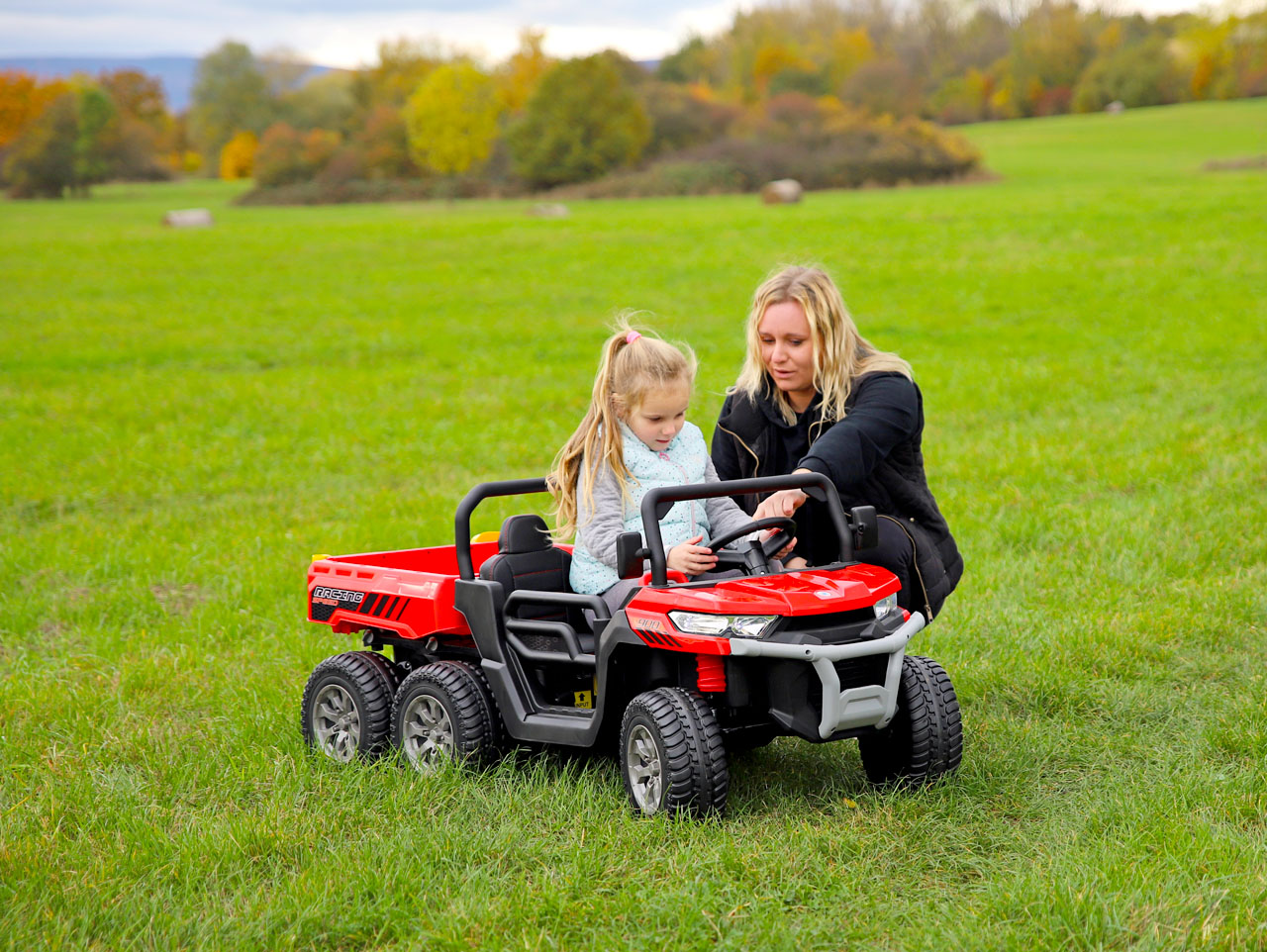 Elektrické autíčko Texas Farmer poháňa4 motory s výkonom 24 V / 120 W . S celkovým výkonom 480 W je tak dostatočne silné na to, aby zdolalo ľahší terén , ako je lúka alebo poľná cesta. Ak majú totiž deti niečo zažiť, nemôžete ich držať na asfaltke za domom. Pravá zábava sa skrýva v outdoore. Len v prírode sa môžu hrabať v hline, stavať hrady z piesku, domčeky z machu a zbierať mamičke tie najkrajšie kamienky. Na pešej zóne s nimi dôjdete na preľudnené ihrisko a budete na seba s ostatnými rodičmi znudene pozerať s lopatičkou v ruke. Na čistinke pri lese im zábavu vymýšľať nemusíte.