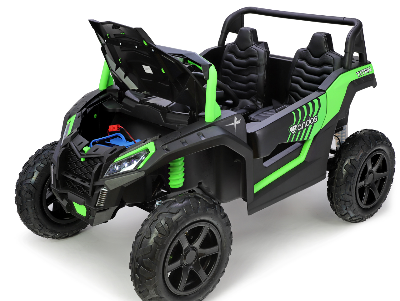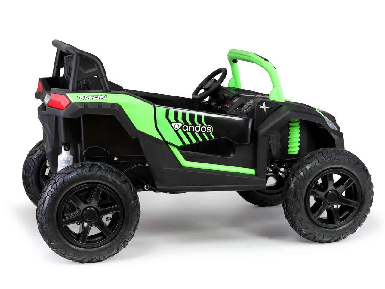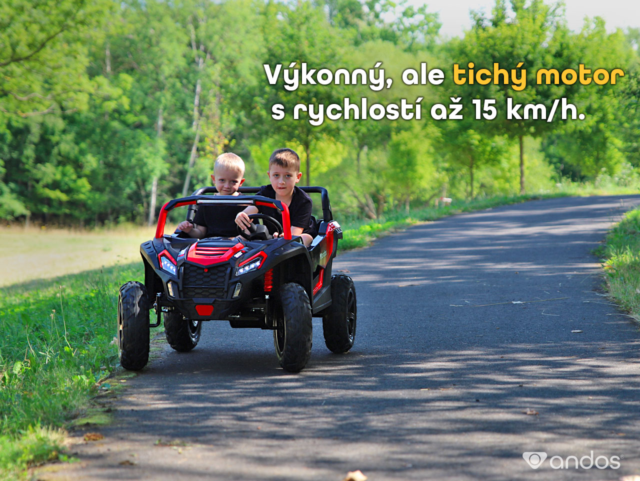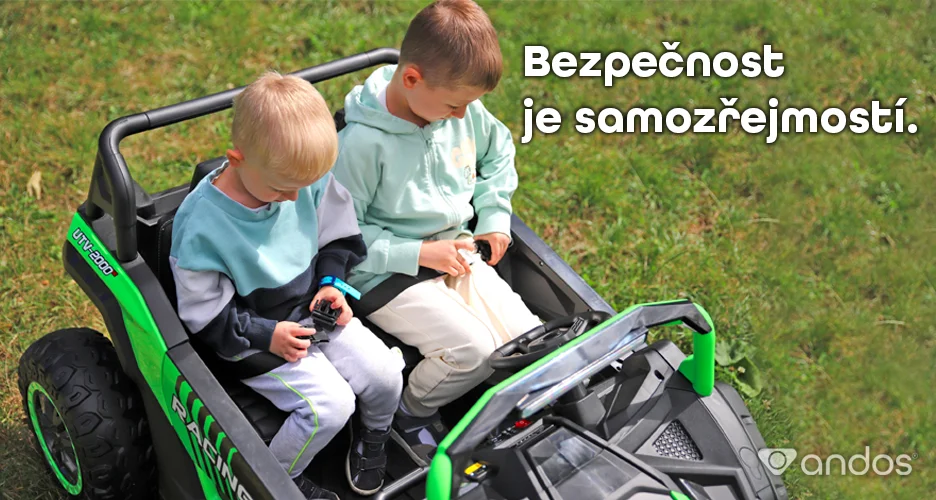 Andos Titan PRO je to najlepšie, čo dnes na trhu detských autíčok nájdete. Nový bezkartáčovýmotor 24V/180W s diferenciálom posúva zážitok z jazdy na úplne novú úroveň - rýchlejšia, plynulejšia a pohodlnejšia než kedykoľvek predtým. A čo je na ňom najlepšie? Na rozdiel od bežných motorov je krásne tichý, čo ocenia nielen deti, ale aj vy a susedia. Bytelná kovová konštrukcia s nosnosťou 100 kg a široká posuvná sedačka zaistí bezpečie aj komfort dvom väčším deťom. Odovzdajte deťom klíčky. Toto bude nezabudnuteľná jazda!