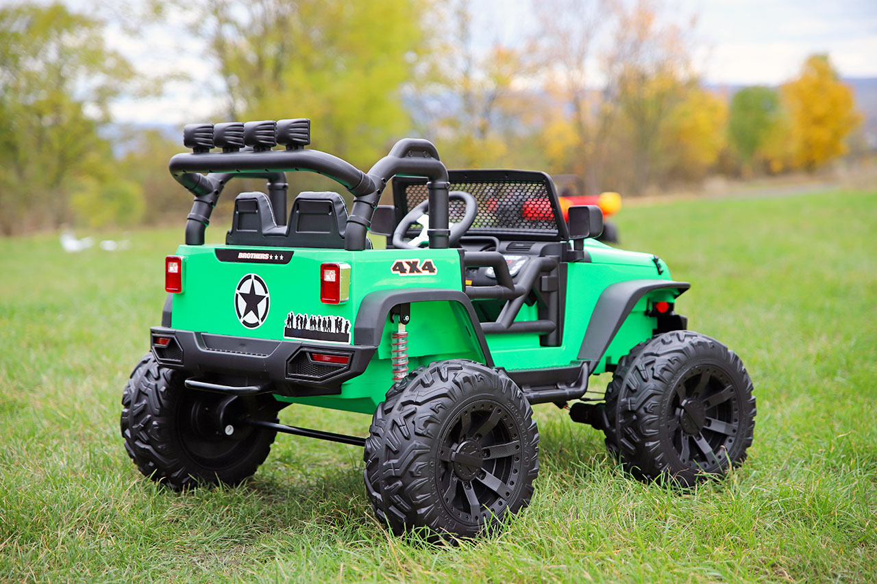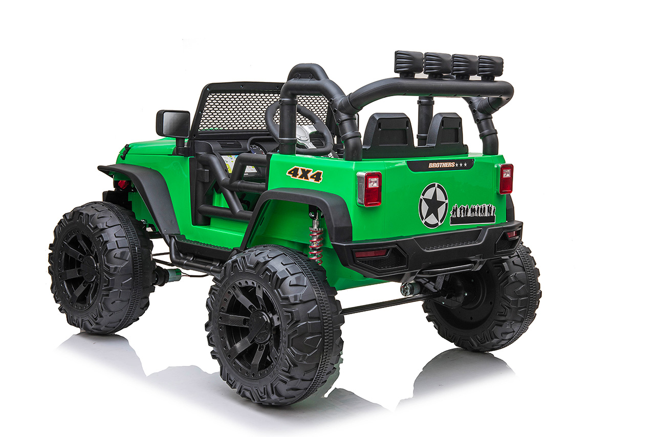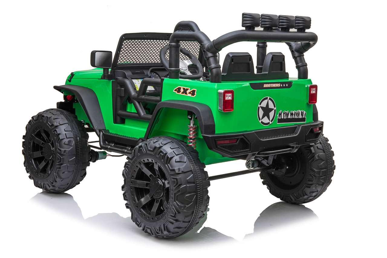 Džíp Brothers naozaj neklame telom, robustný vzhľad dopĺňa nadpriemerný výkon, takže zvládne aj ľahší terén. S týmto autíčkom sa nemusíte motať len okolo domu alebo sa nechať obdivovať na pešej zóne, vydajte sa do prírody. Zdolajte nespevnenú cestu smerom k lesu alebo prekonajte lúku za domom. Všetky štyri kolesá poháňajú motory s výkonom 24V/200W. S celkovým výkonom 800 W tak džíp Brothers patrí k najvýkonnejším autíčkam na trhu. Aj podvozok je o poznanie vyšší, takže prekonávanie drobných nerovností bude o niečo plynulejšie.
