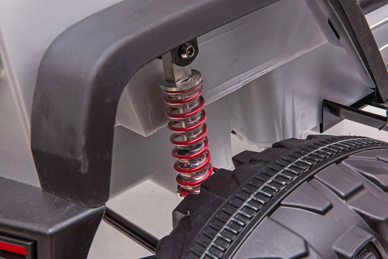 Vozidlo dodávame v rozloženom stave, ale nebojte sa. S priloženým podrobným fotonávodom nemusíte byť ani domáci majster a aj tak bude autiak do akcie pripravený za pár desiatok minút. Počítajte s tým, že balenie váži vyše 29 kg a určite sa vám bude hodiť pár rúk navyše, keď ho budete preberať. Samotné vozidlo sa s rozmermi 123 x 88 x 80 cm a hmotnosťou 29 kg rozhodne nehodí na parkovanie na poschodí. Auto do akcie musí niečo vážiť.