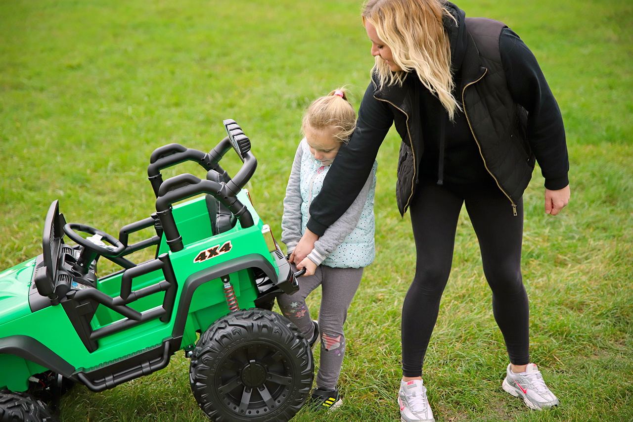 K elektrickému autíčku džíp Brothers dodávame diaľkový ovládač, ktorý má prednosť pred manuálnym riadením. Na ňom nájdete nastavenie troch rýchlostí, tlačidlá pre jazdu vpred, vzad aj do strán. Autíčko môžete vďaka nemu plne ovládať, či už v ňom malý nezbedník sedí, alebo práve pri lese dopĺňa svoju zbierku kamienkov. Diaľkový ovládač sa páruje priamo s vaším autíčkom a vďaka pripojeniu 2.4 G sa nemusíte obávať rušenia signálu.