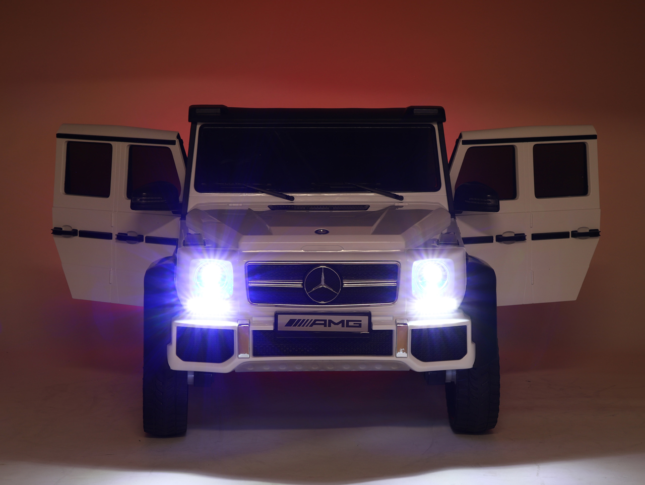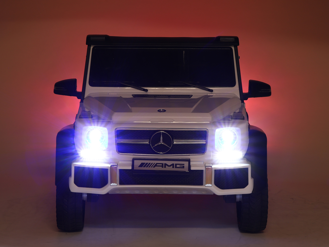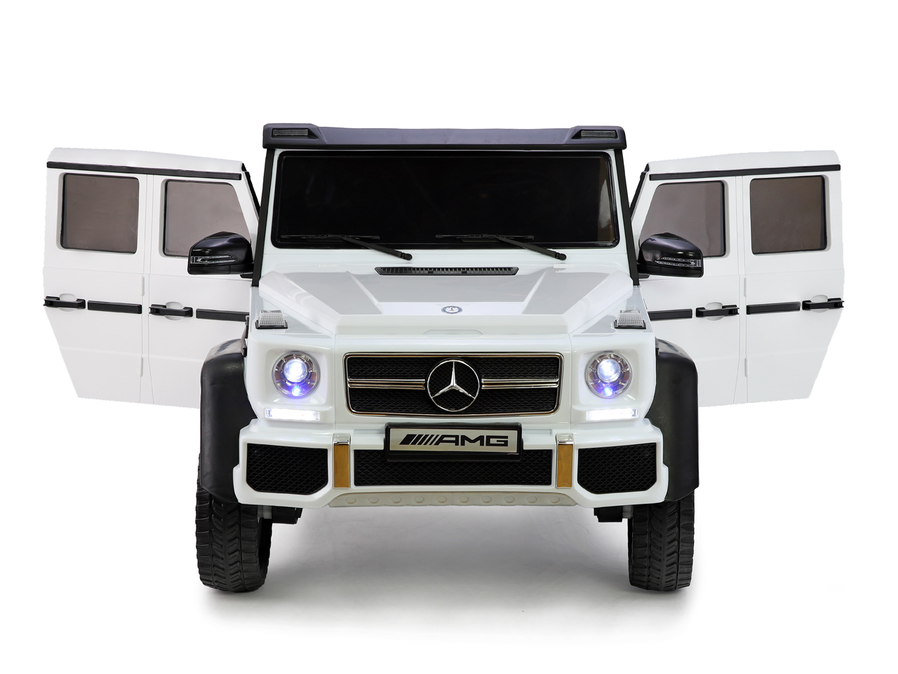 Elektrické autíčko Mercedes G63 je dostupné v dvoch farbách - elegantné čierne alebo štýlové biele . Odoláva UV žiareniu , takže si udrží svoju krásnu farbu aj keď deti budú parkovať na slniečku.