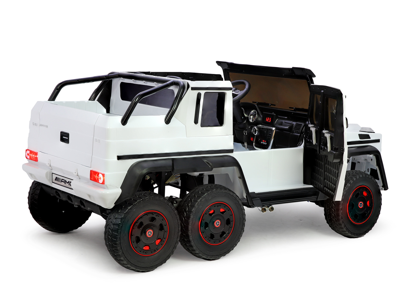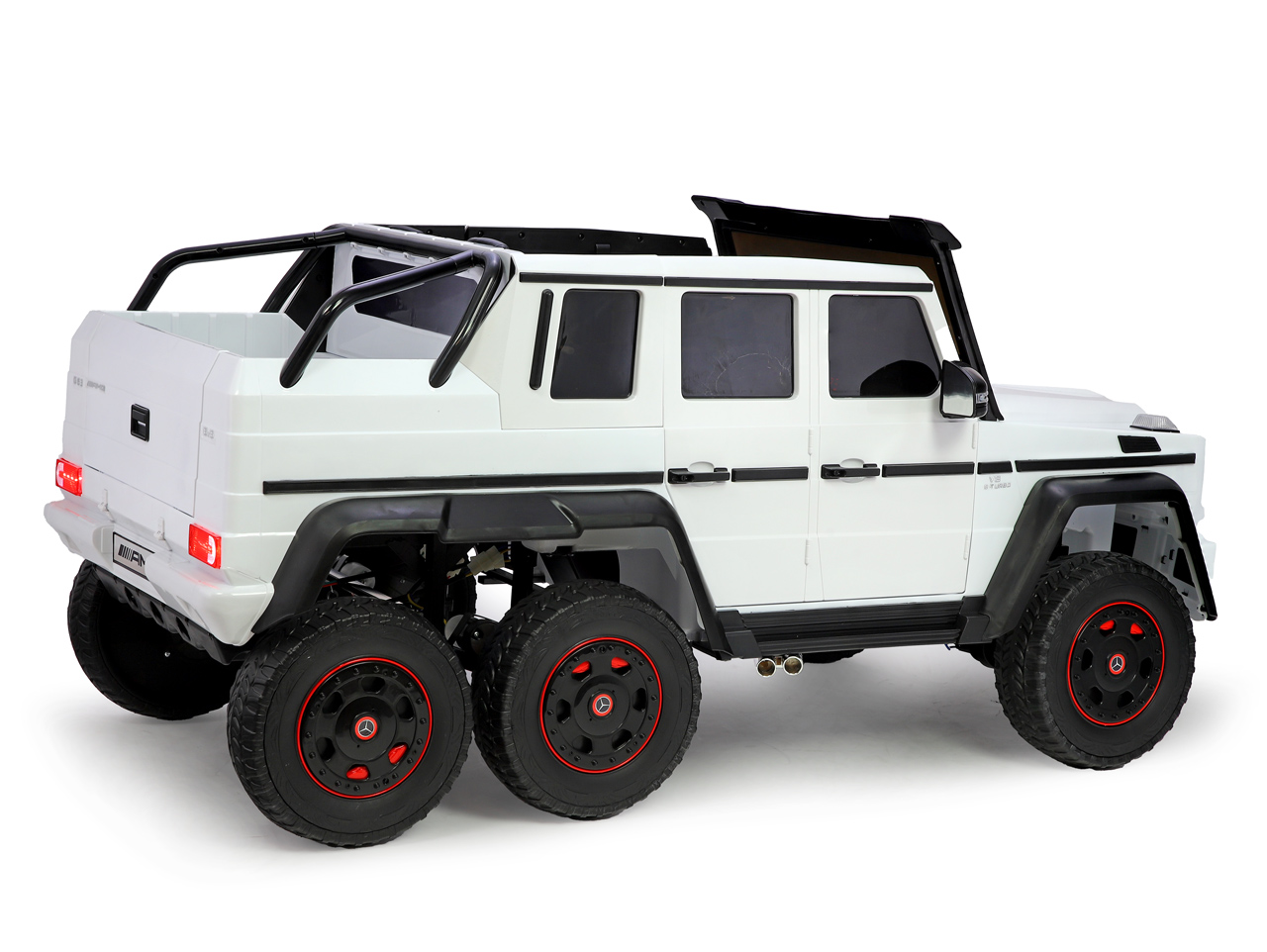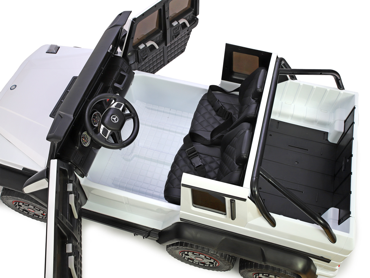 zostavené | pohon 6x6: 4x motor 12V/45W + 2x 28W, prenosný box s batériami 2x 12V/7Ah spojené do 12V/14Ah, nosnosť 60 kg, 2 rýchlosti na manuál / 3 rýchlosti na diaľkové ovládanie, EVA kolesá, sedačka z eko kože, odpružené zadnej nápravy, Bluetooth, USB, AUX, SD karta, plynulý rozjazd, LED svetlá, otvárateľné dvere a kapota, ukazovateľ stavu batérií, licencia Mercedes-Benz Celý popis