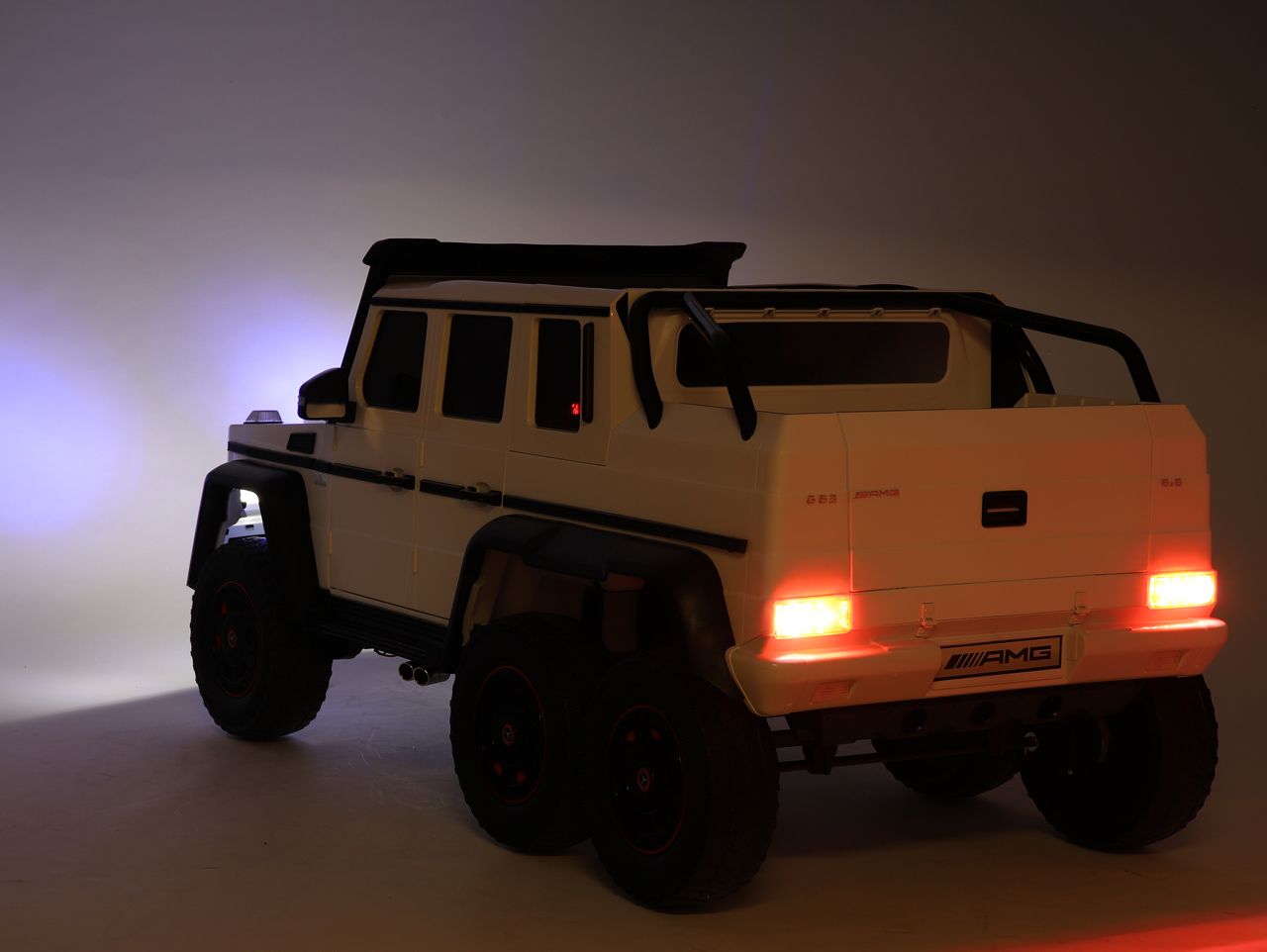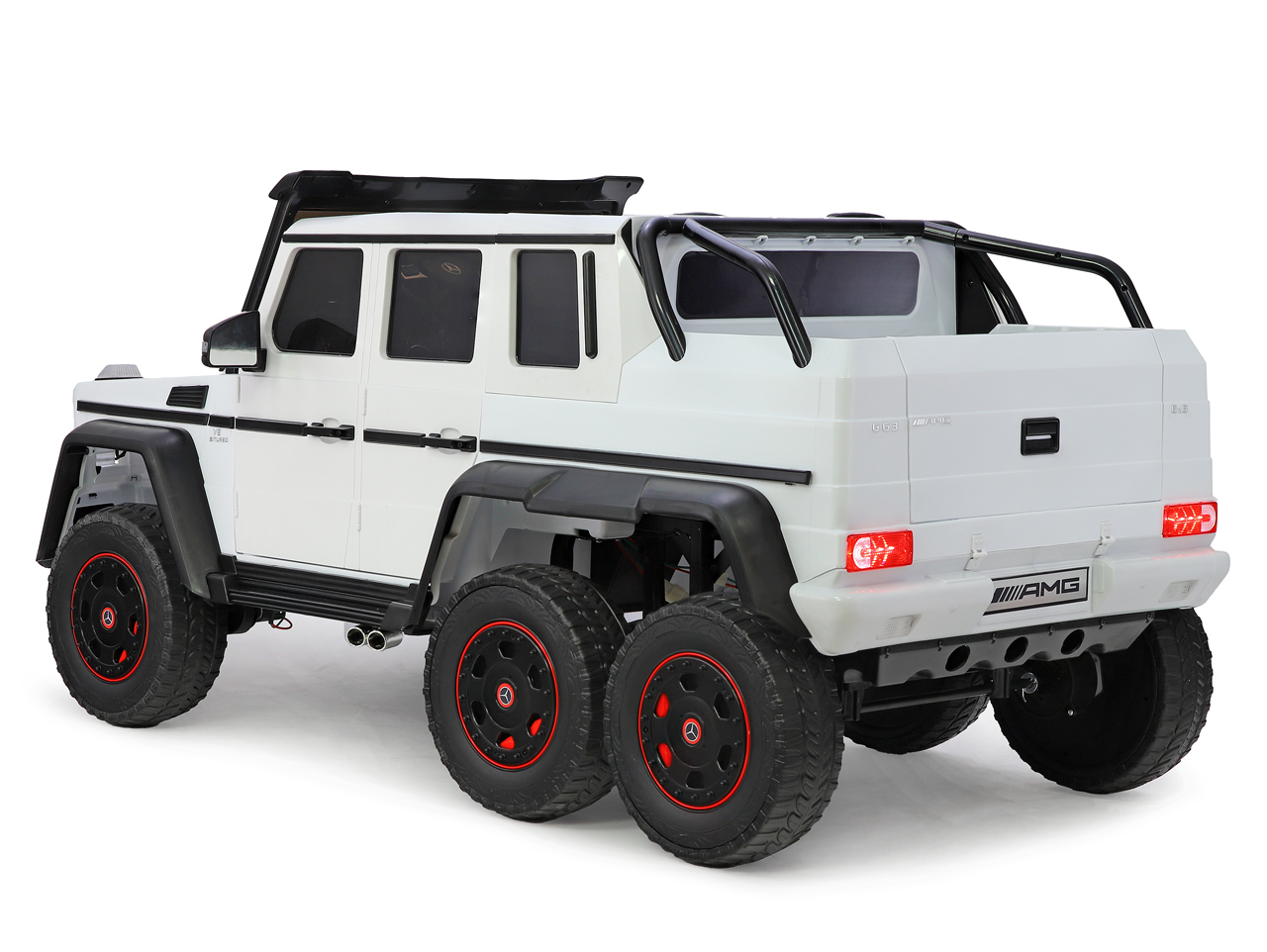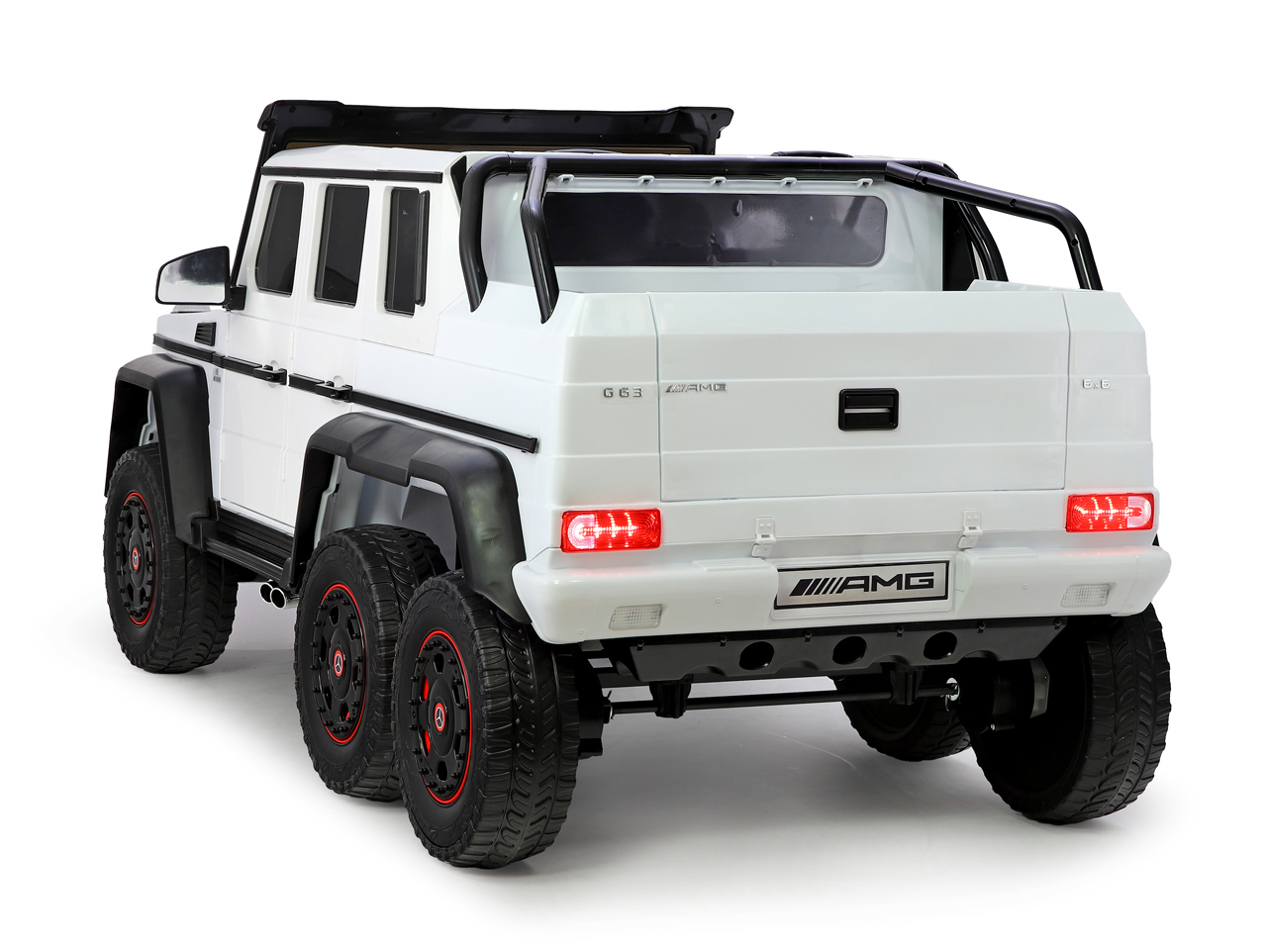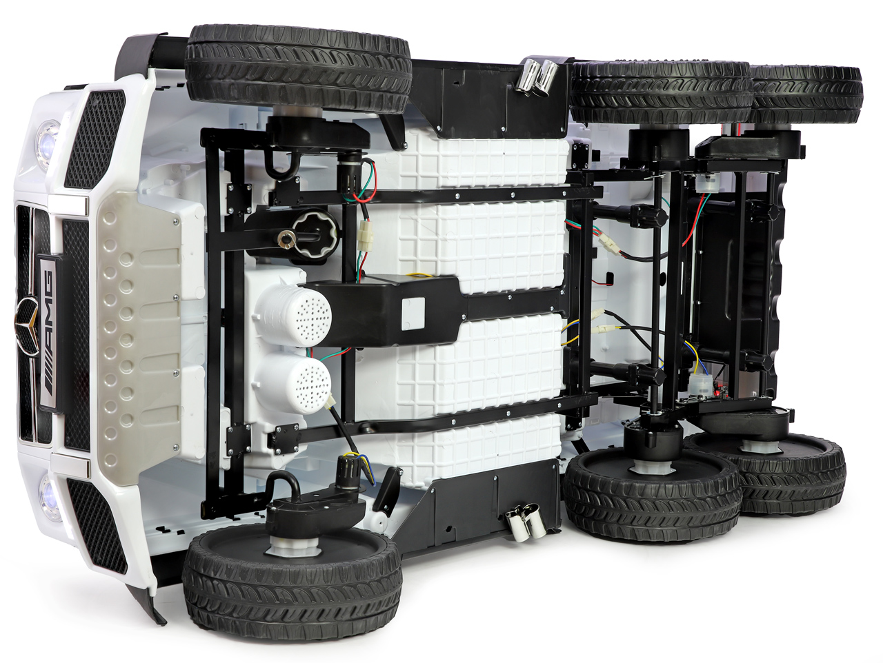 zostavené | pohon 6x6: 4x motor 12V/45W + 2x 28W, prenosný box s batériami 2x 12V/7Ah spojené do 12V/14Ah, nosnosť 60 kg, 2 rýchlosti na manuál / 3 rýchlosti na diaľkové ovládanie, EVA kolesá, sedačka z eko kože, odpružené zadnej nápravy, Bluetooth, USB, AUX, SD karta, plynulý rozjazd, LED svetlá, otvárateľné dvere a kapota, ukazovateľ stavu batérií, licencia Mercedes-Benz Celý popis
