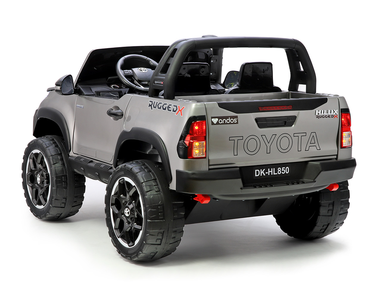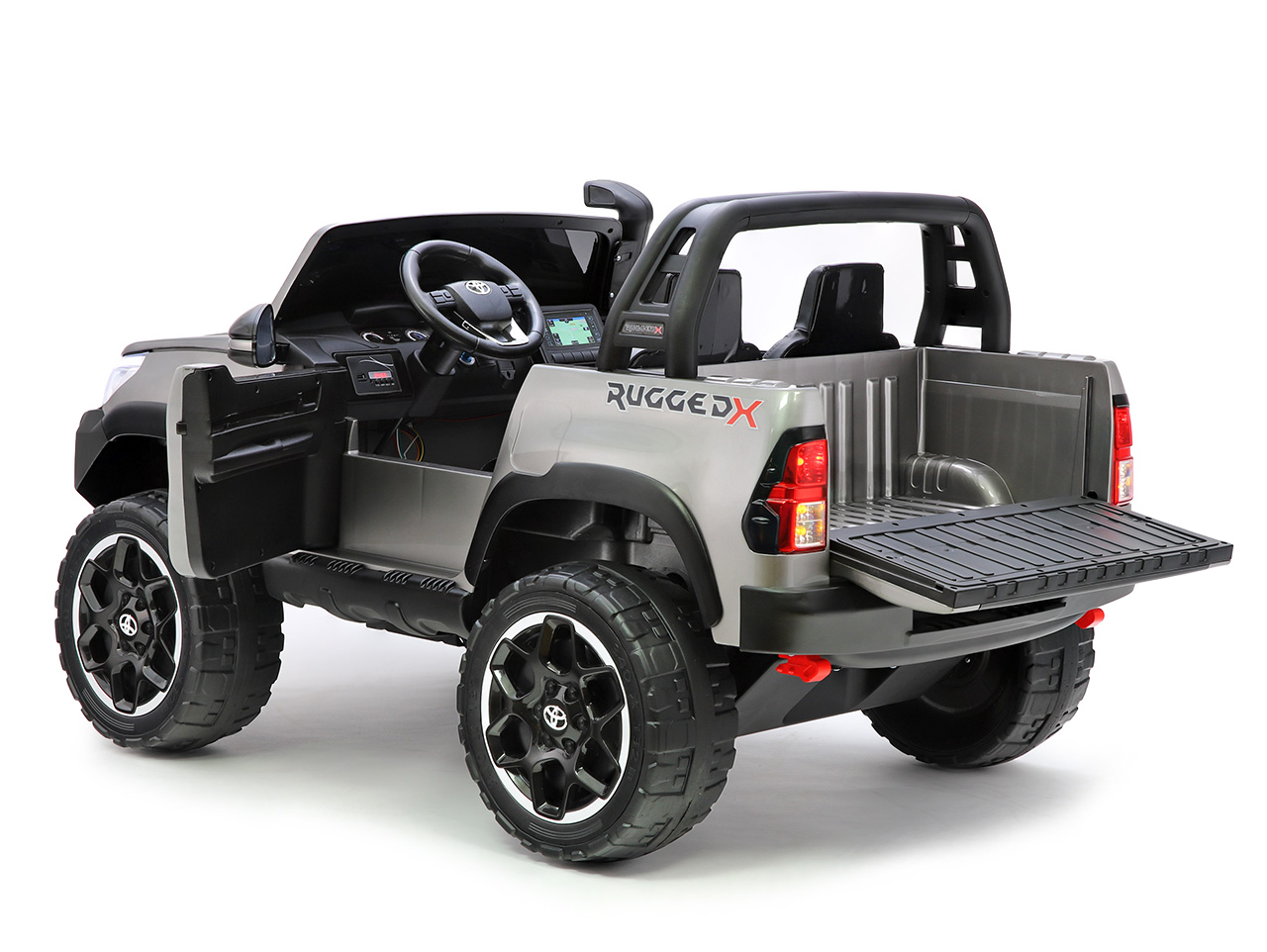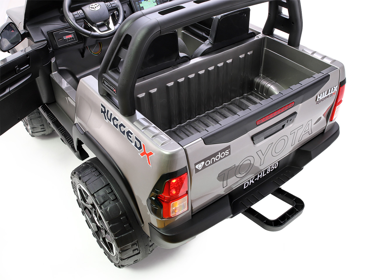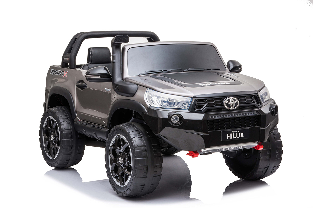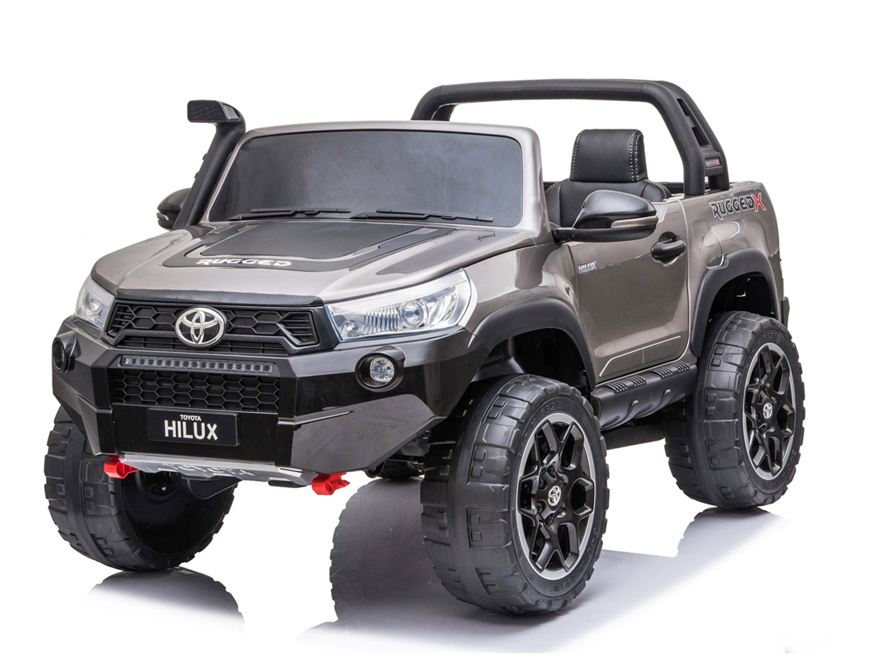 Pozeráte sa na dokonalú zmenšeninu legendárneho pick-upu z garáže automobilky Toyota. Svojím smelým vzhľadom a extra výkonom vystupuje nový Hilux zo šedej davu. Jedná se o prémiovú verziu Toyoty Hilux, ktorá je vybavená štyrmi motormi 24V/200W a rovno dvoma batériami 24V/7Ah. Vnútri autíčka sú umiestnené dve pohodlné, ručne prešívané sedačky. Robustná karoséria si poradí so zaťažením až 50 kilogramov. Toyota Hilux je ako stvorená pre vyčíňanie vo dvojici.