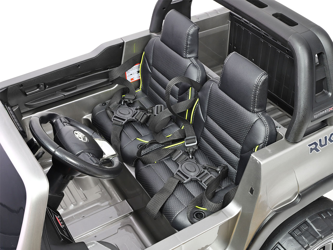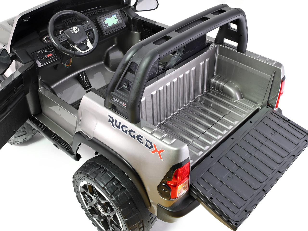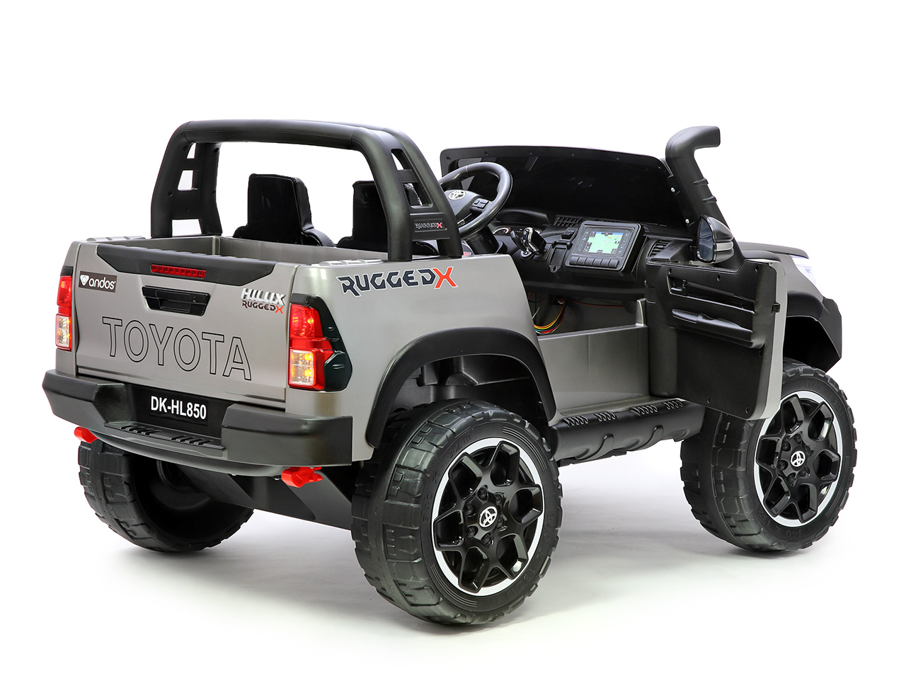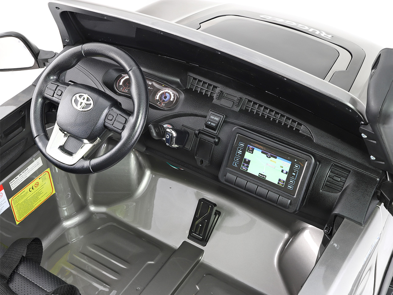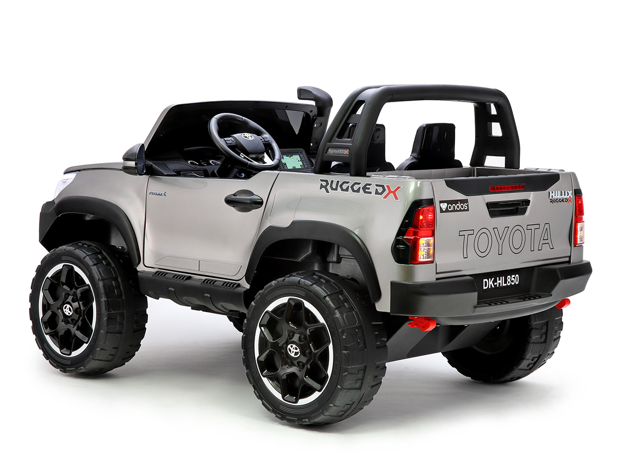 Pozeráte sa na dokonalú zmenšeninu legendárneho pick-upu z garáže automobilky Toyota. Svojím smelým vzhľadom a extra výkonom vystupuje nový Hilux zo šedej davu. Jedná se o prémiovú verziu Toyoty Hilux, ktorá je vybavená štyrmi motormi 24V/200W a rovno dvoma batériami 24V/7Ah. Vnútri autíčka sú umiestnené dve pohodlné, ručne prešívané sedačky. Robustná karoséria si poradí so zaťažením až 50 kilogramov. Toyota Hilux je ako stvorená pre vyčíňanie vo dvojici.