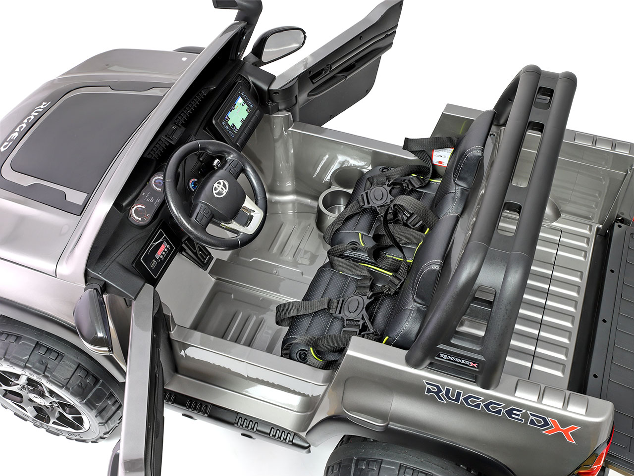 Dva poriadne motory, dve sedačky a dva päťbodové bezpečnostné pásy. Viete, čo to znamená? Už žiadne nariekanie a hádanie sa o to, kto bude práve jazdiť. Súrodenci, kamaráti alebo škôlkovej lásky môžu na prechádzku vyraziť spoločne! Toyota Hilux si hravo poradí so zaťažením až 50 kg.