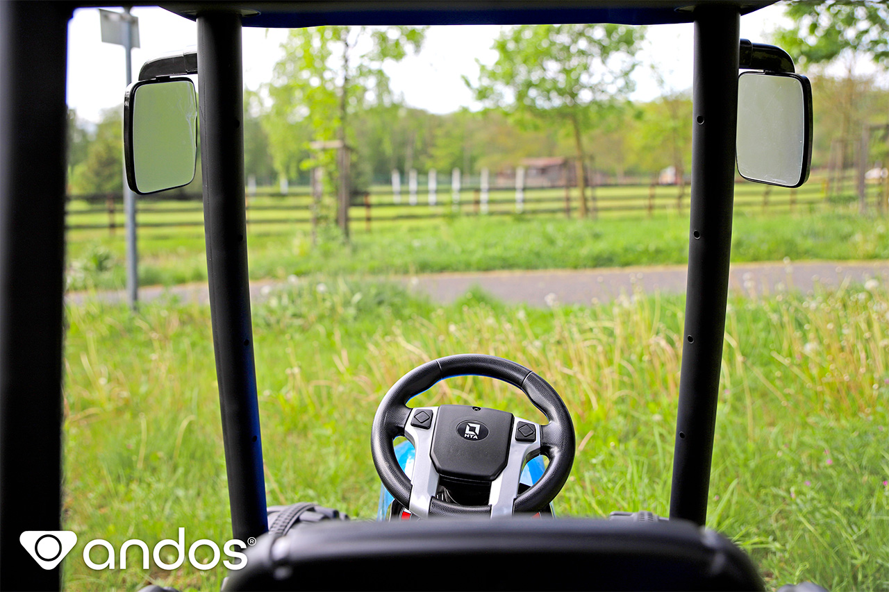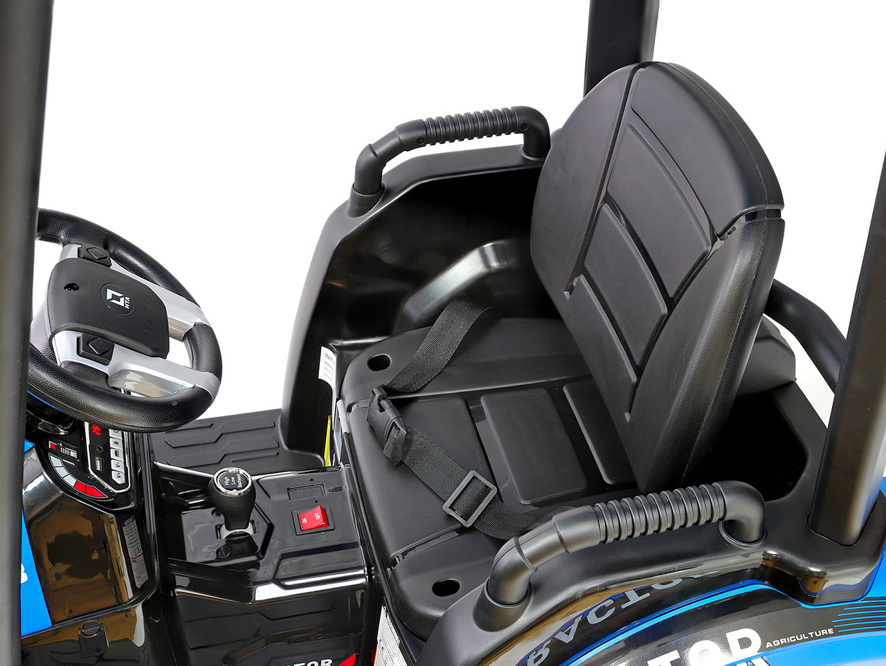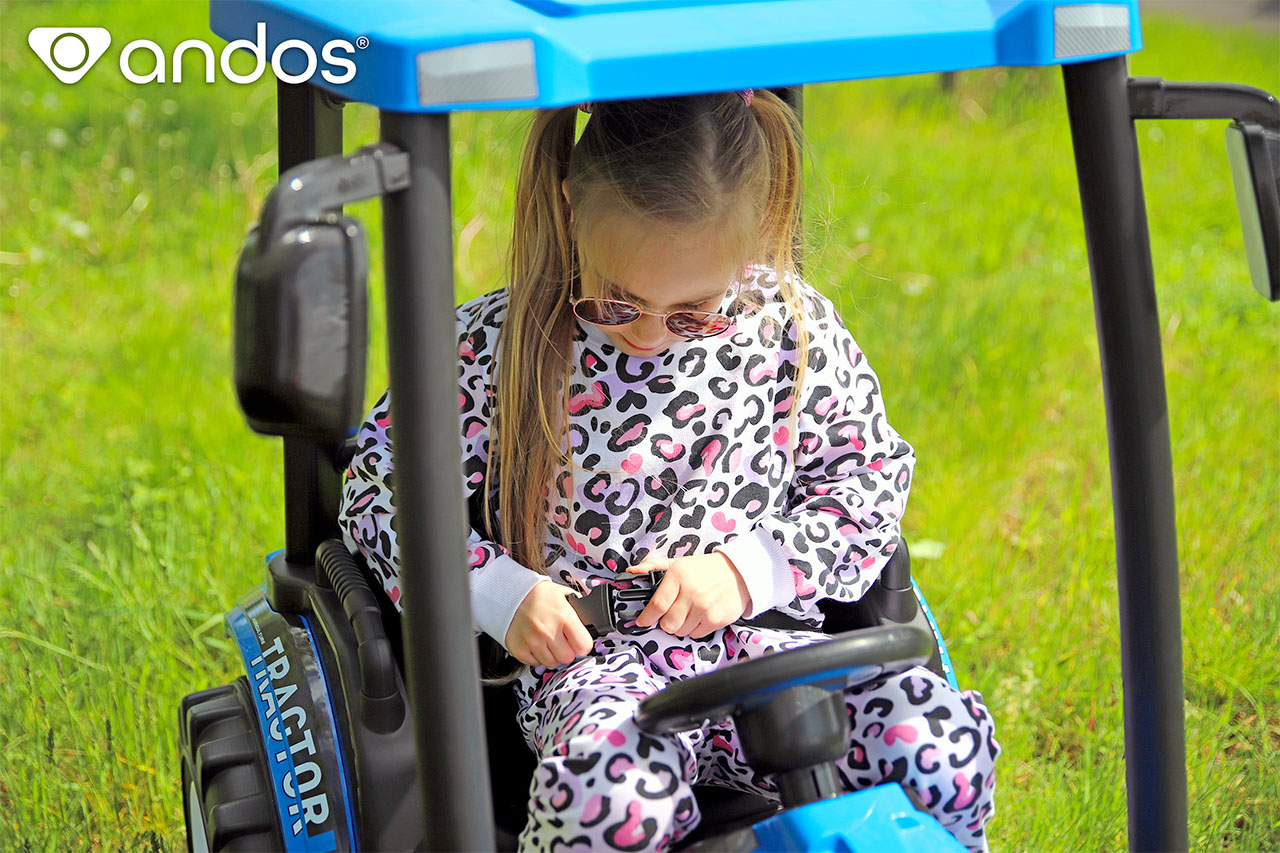 Elektrický traktor Hercules má strechu, ktorá nie je medzi elektrickými vozidlami úplne bežná. Nielen, že malého traktoristu ochráni pred miernym dažďom, hlavne dodáva iný pocit z jazdy ako otvorené elektrické autíčko. Strecha je umiestnená vo výške 63 cm od sedadla, takže sa do kabíny zmestia aj väčšie deti, je možné ju navyše odmontovať. Deti v traktore sedia vysoko a majú rozhľad, ale báť sa nemusíte. Istí je nastaviteľný bezpečnostný pás a pre výstup použijú stúpačku vo výške 20 cm a pevné plastové madlá.