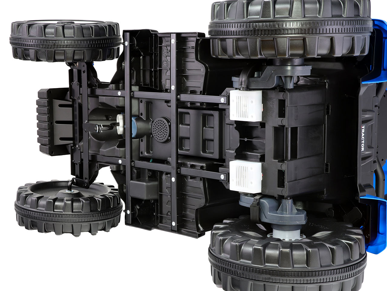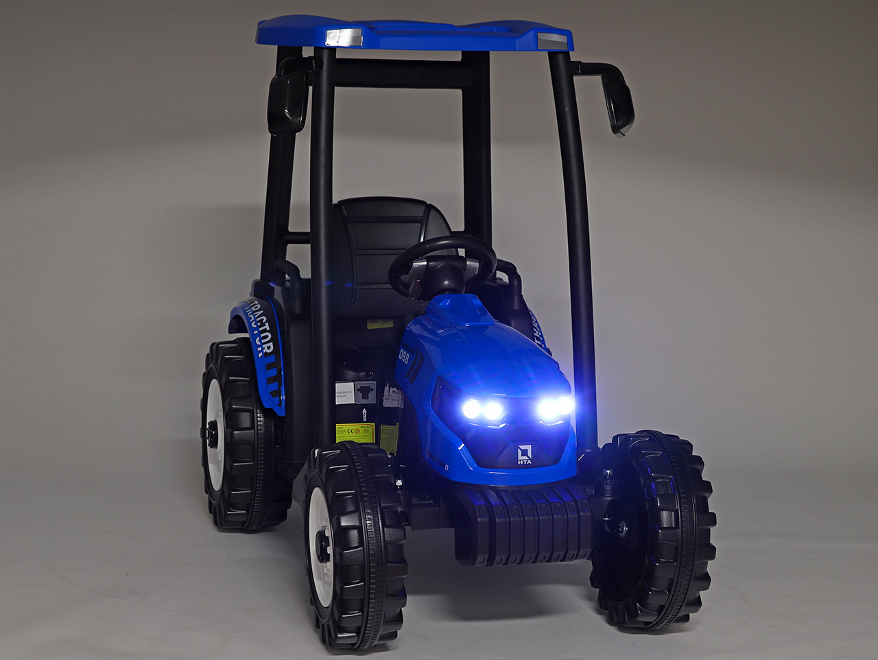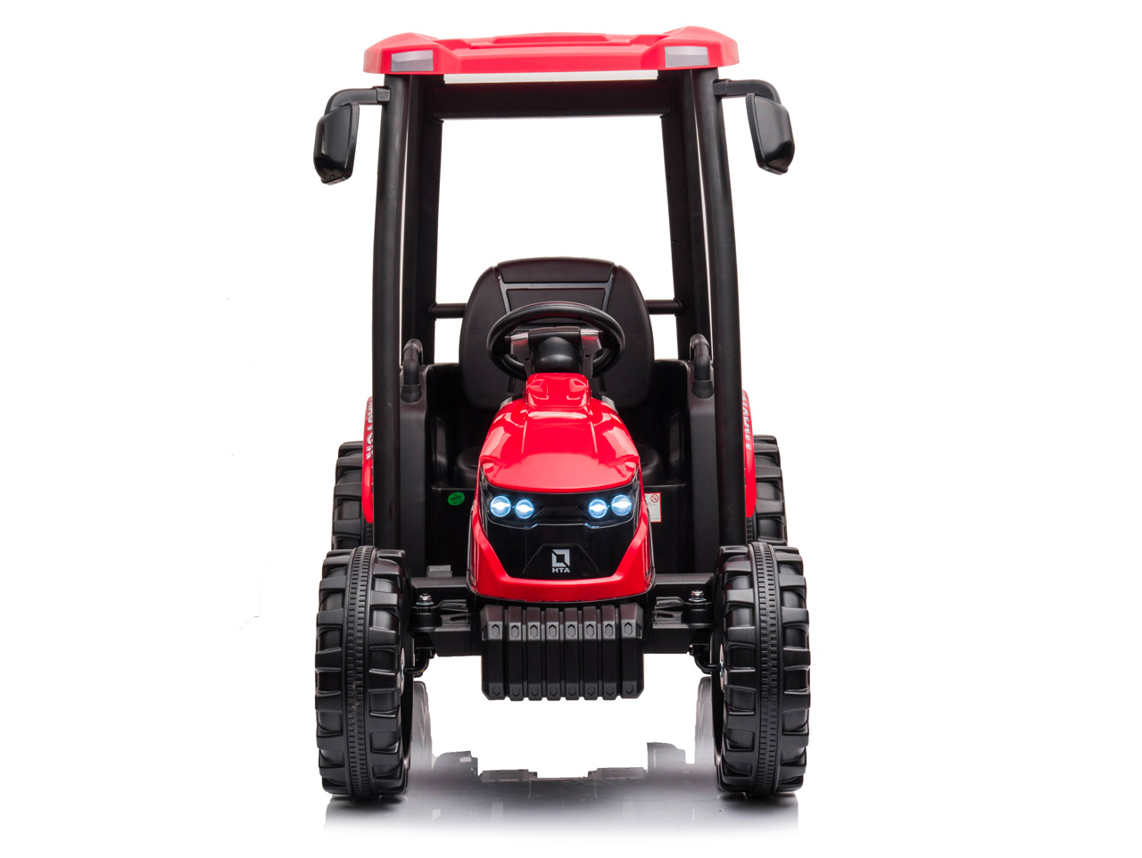 Čo robí traktor traktorom? Klasický tvar karosérie pripomínajúci živého tvora. Vysoká kabína, masívne, tvarované a široké kolesá – tie zadné o poznanie väčšie ako tie predné. Tak presne to náš elektrický traktor Hercules spĺňa. Dizajn sme vyladili do posledného detailu vrátane spätných zrkadiel, predných LED svetiel, autentickej radiacej páky a imitácie tachometra na prístrojovej doske. Toto elektrické vozidlo tak má všetko, čo váš malý raubír traktoristom okolo závidí.
