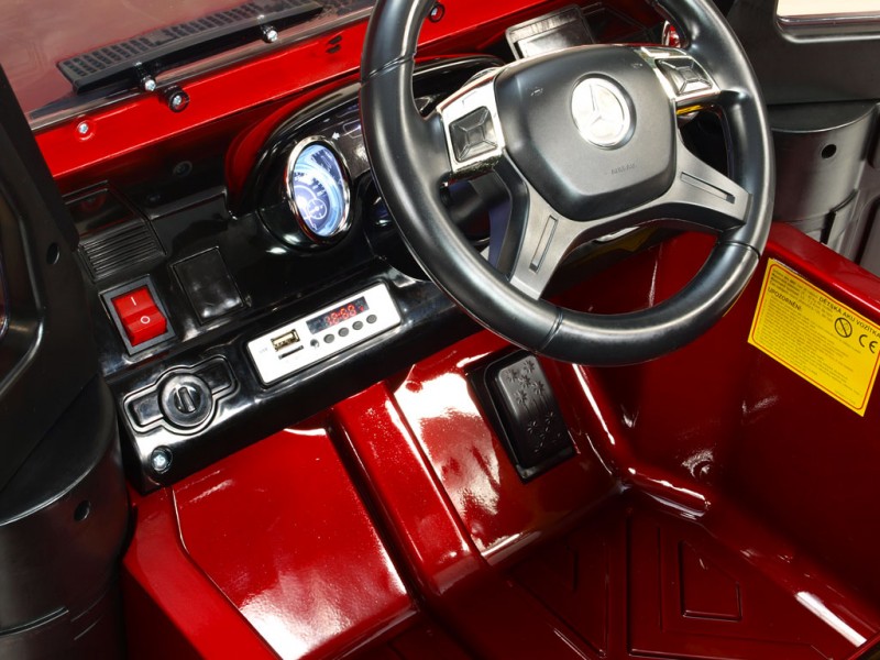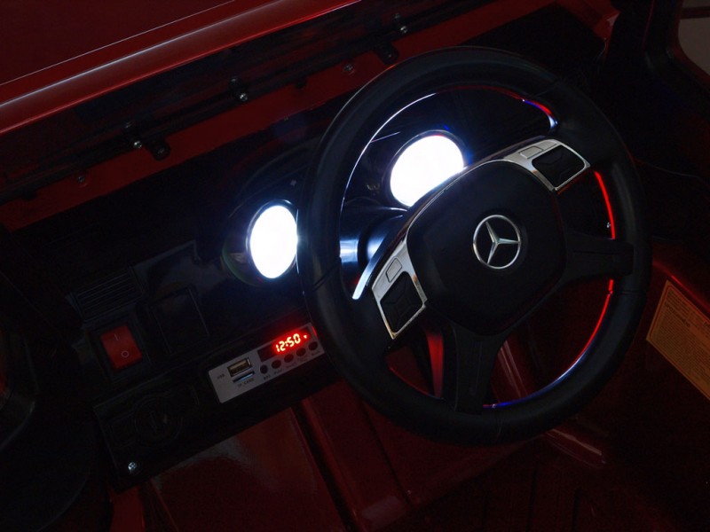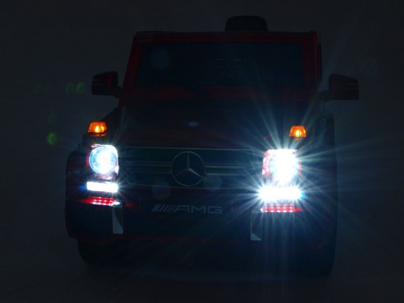 Mercedes-Benz G63 je opatrený vstupom pre MP3 prehrávač, USB aj SD (pamäťovú) kartu. Vďaka tomu môžete v autíčku pustiť hudbu nahranú napríklad aj na flash disku alebo telefóne a deti tak môžu počas jazdy počúvať svoju vlastnú obľúbenú muziku. Zážitok z jazdy bude o to väčší a deti si jazdu maximálne užijú. Pokiaľ ale práve nemáte flashku, MP3 prehrávač alebo akýkoľvek iný zdroj hudby po ruke, nezúfajte. Autíčko má zabudovaný vlastný rad moderných piesní a zvukových efektov.