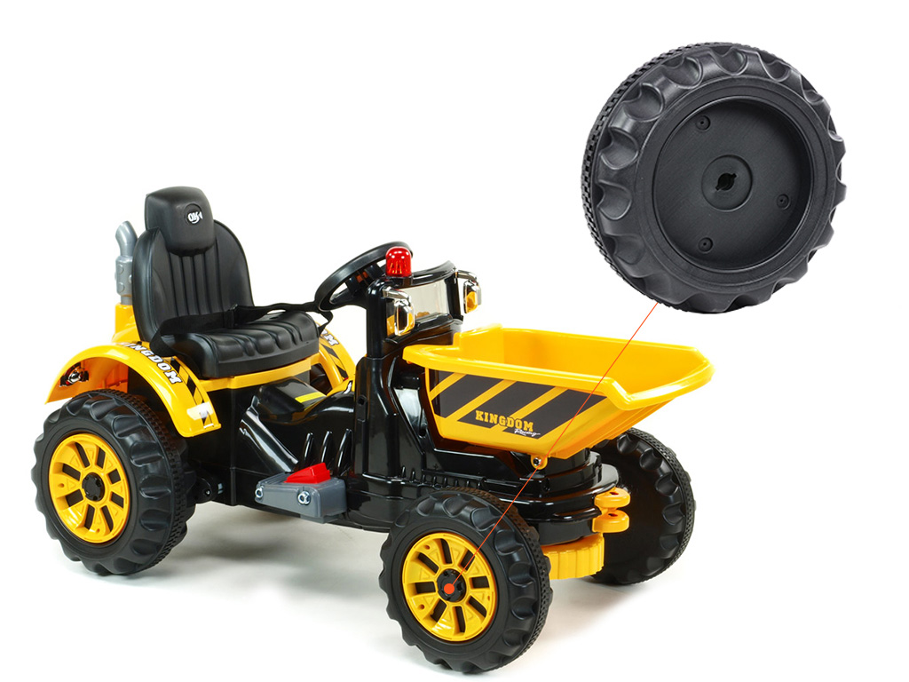 Náhradné plastové koleso s gumovým pásom koleso je určené pre detský elektrický traktorík Kingdom (model číslo JS328) . Možno použiť ako predné koleso, na pravú aj ľavú stranu . Pozor: patrí iba na prednú nápravu.