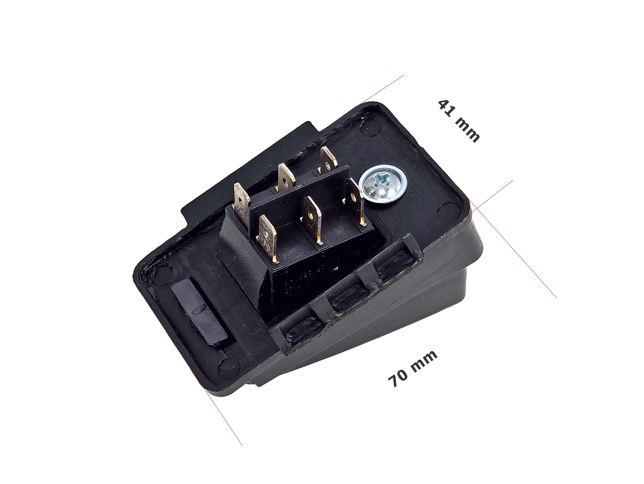 Náhradný pedál so spínačom 6 pin pre detské elektrické vozidlá. Obsahuje integrovaný spínač. Rozmer spodného rámčeka 70x41 mm. Pedál nie je univerzálny – pred nákupom porovnajte prevedenie, rozmery a typ zapojenia s pôvodným dielom. Celý popis
