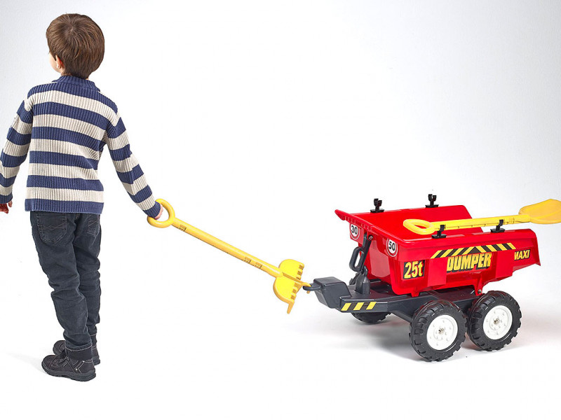 Originálny štvorkolesový vlek značky FALK, vybavený sklápacím mechanizmom, lopatou a hrabľami, červený, vhodné pre deti od 3 do 7 rokov, vyrobené vo Francúzsku Celý popis