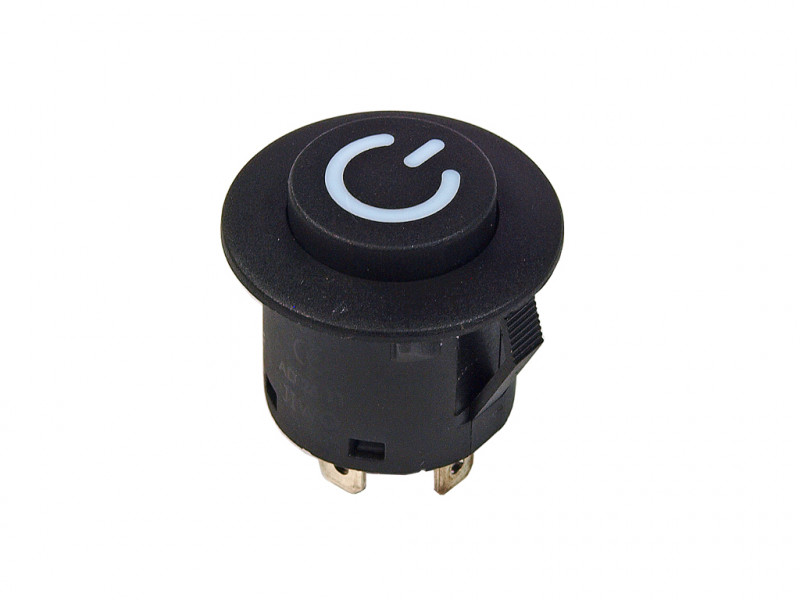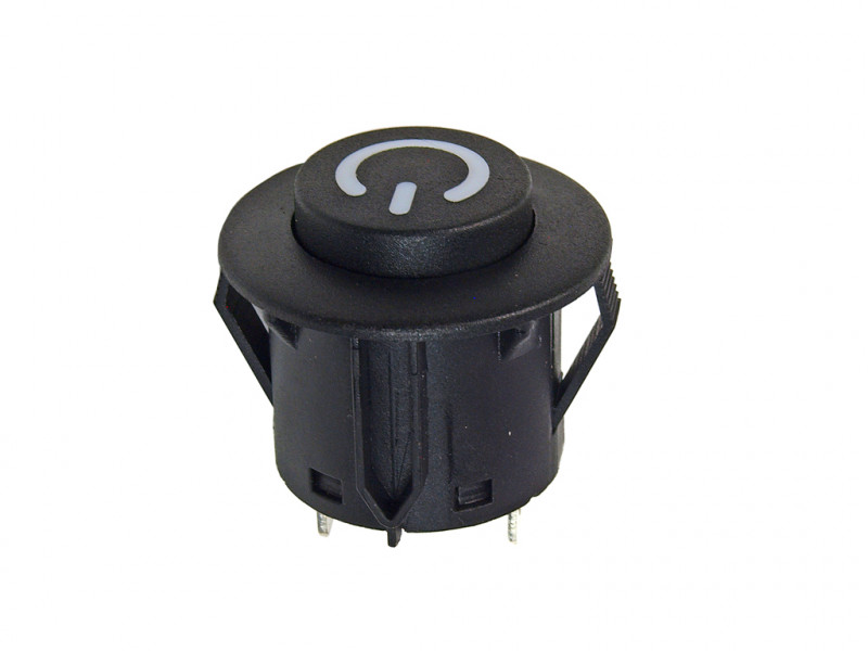 Náhradní kulatý vypínač O-I (ON/OFF) určený pro dětská vozítka - elektrická autíčka, motorky, čtyřkolky, traktory, buginy.