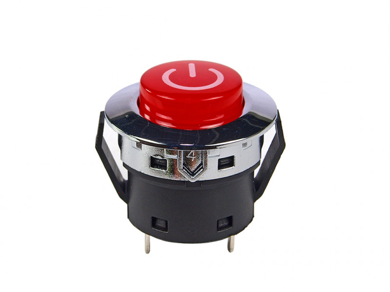 Náhradný okrúhly vypínač OI (ON/OFF) určený pre detské vozítka - elektrické autíčka, motorky, štvorkolky, traktory, buginy.