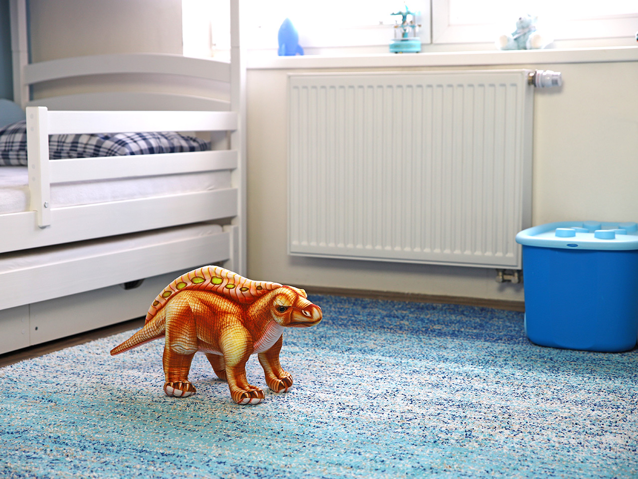 Skutočný lotosaurus meral okolo 2,5 metra a bol to bylinožravec so zvláštne malým krkom a hrebeňom na chrbte. Poznáme ho z unikátneho, veľmi dobre zachovaného pozostatku kostry nájdenej v strednej Číne a žil pravdepodobne v období neskorého triasu. Pre vás je však dôležité, že je neskutočne roztomilý. So svojou guľovitou hlavou, roztomilými očami a stĺpovitými nohami nadchne milovníkov dinosaurov každého veku. Pridali sme mu zvedavé očká, ktoré vyzývajú k hre . Povrch tela tohto dinosaurieho kamaráta je jemný a ľahko umývateľný. Stačí ho utrieť vlhkou handričkou a je pripravený zahrievať detskú postieľku.