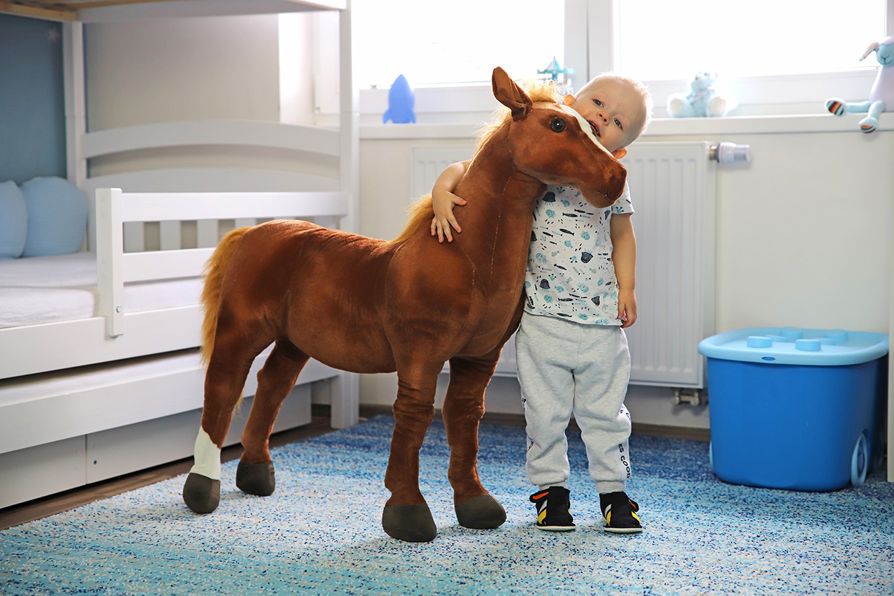 Veľký plyšový kôň z kolekcie andos plyšová zoo ozdobí každú izbu a bude dokonalým spoločníkom. Hlavne milovníci a milovníčky koní sa na prvý pohľad zamilujú. S výškou 94 cm si totiž malé deti musia stúpnuť na špičky, aby ho objali okolo krku. Ale až zaboria tvár do jeho mäkkého kožúšku, nebudú tej námahy ľutovať. Celý popis