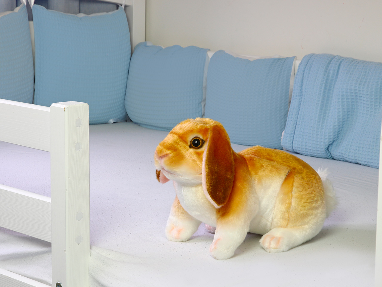 Plyšové zajačiky sú rovnako ako medvedíky obľúbeným doplnkom detských postieľok a dostanete ich v najrôznejších formách i veľkostiach. Náš plyšový králik sa však drží reality. Veľkosťou, proporciami, očami, výrazom i dĺžkou uší kopíruje výzor zakrpateného baránka. Ten je podľa nášho názoru roztomilý až až, nie je potrebné nič pridávať. Vyhrali sme si aj s farebnou štruktúrou srsti, ktorá plynule prechádza od hnedej po bielu.