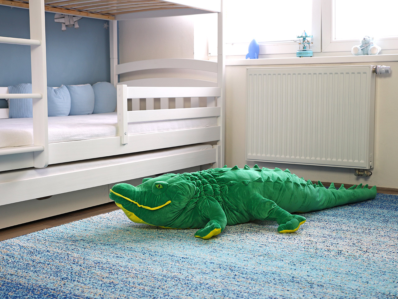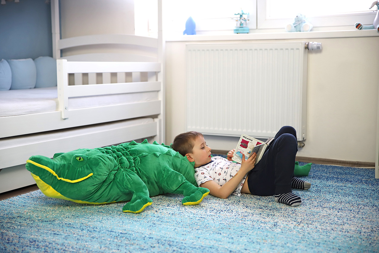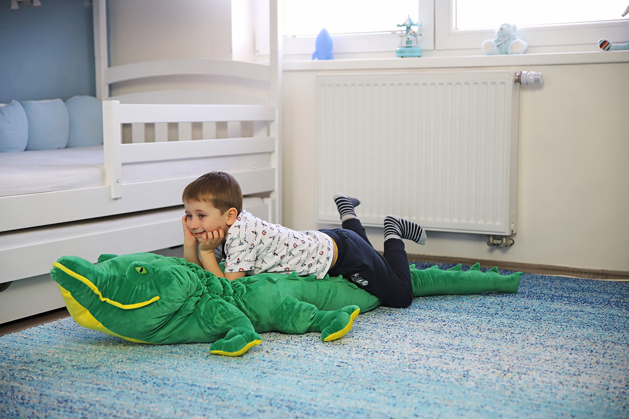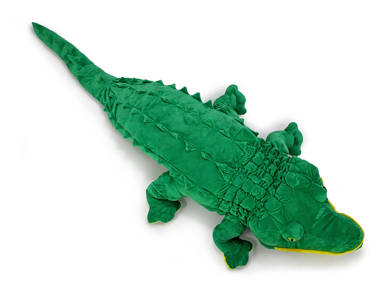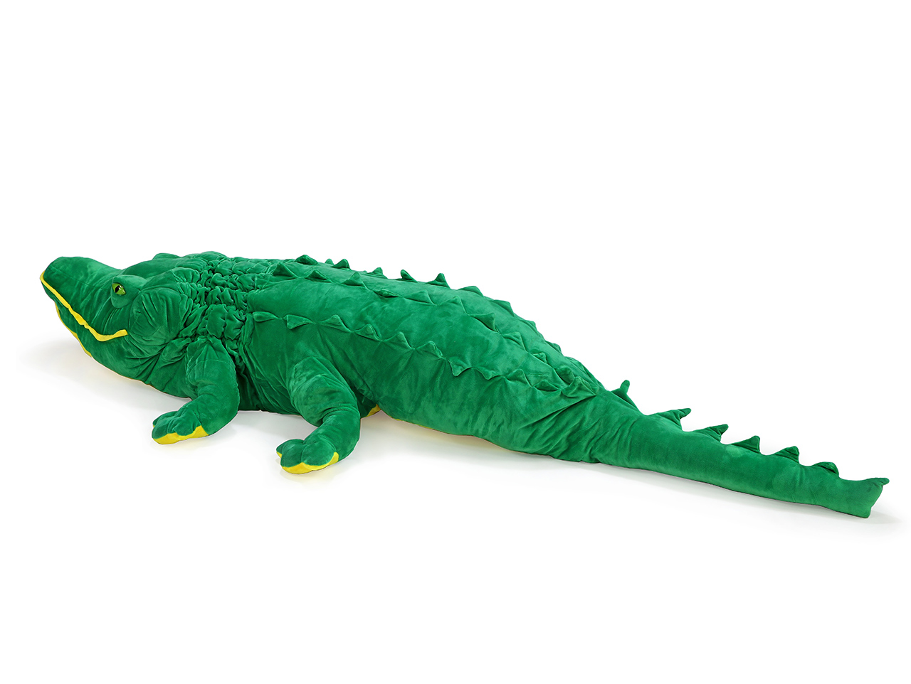 Veľký plyšový krokodíl extra jemný z našej kolekcie meria 162 cm. Poslúži tak deťom ako váľanda, vankúš alebo spoločník na maznanie. Je veľmi mäkký a príjemný na dotyk. Stále má ale typickú krokodíliu hlavu i tvar tela pripomínajúci aligátora. Vďaka žiarivo zelenej sa bude v detskej izbe alebo v herni vynímať, a hlavne sa v jeho prítomnosti budú deti cítiť bezpečne. Rovnako ako všetci plyšáci z našej kolekcie vedia skvele načúvať všetkým detským stlačeniam a mamičky si nemusia robiť starosti s hygienou. Jeho povrch je totiž ľahko umývateľný.