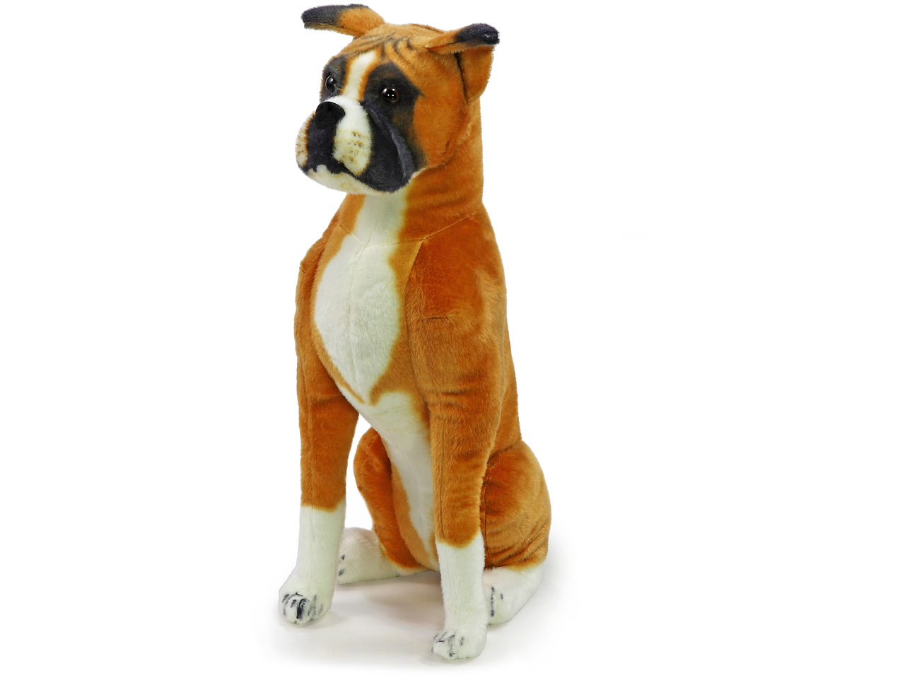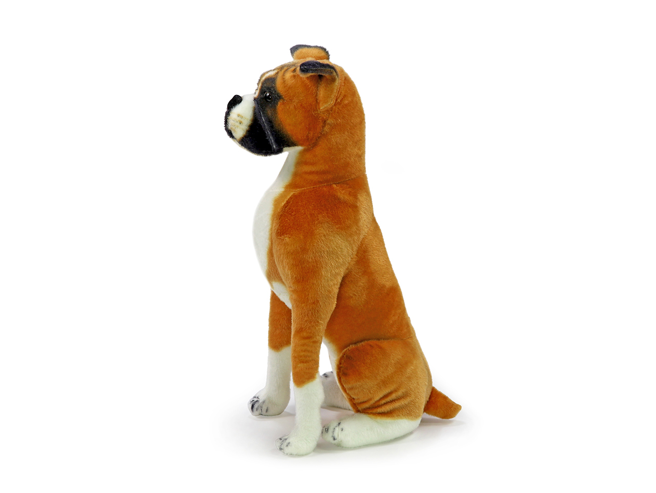 Kde sa tu vzal ten pes? Aha, to je iba plyšák. Tak presne túto situáciu budete s naším plyšovým psom boxerom zažívať často. Je tak skutočný, že jeho plyšovú povahu rozoznáte až pri bližšom stretnutí. Pretože je jeho srsť jemnejšia ako srsť skutočného psa, bude ono blízke stretnutie veľmi príjemné. Celý popis
