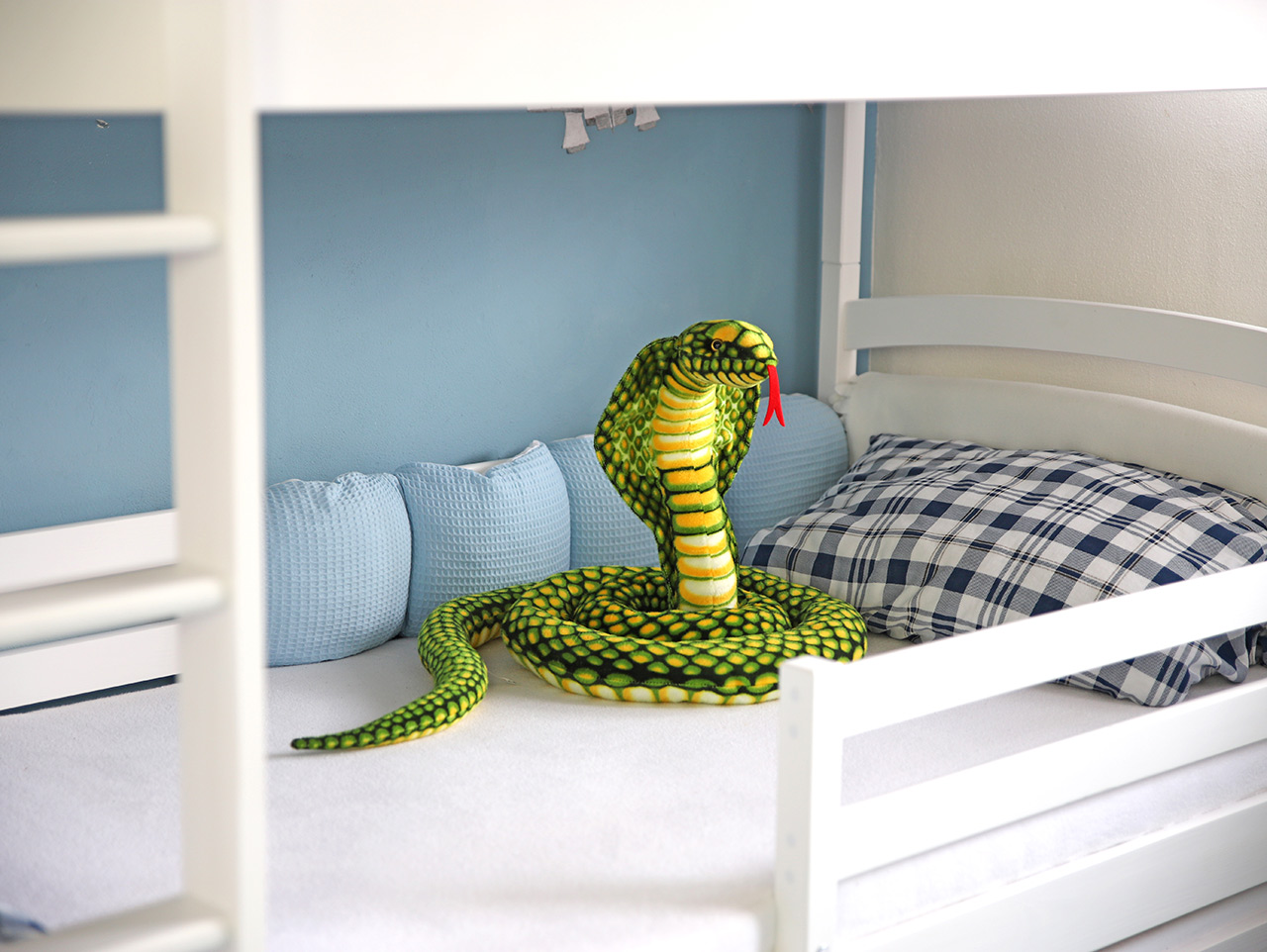 Plyšový had je najlepším strážcom detskej postieľky. S hlavou vztýčenou varovne vypládza rozoklaný jazyk na všetkých nepozvaných návštevníkov. Naša veľká plyšová kobra vyzerá ako živá vrátane krásnej výraznej zelenej kresby, ktorá z nej robí dokonalú dekoráciu detskej izby. Celý popis