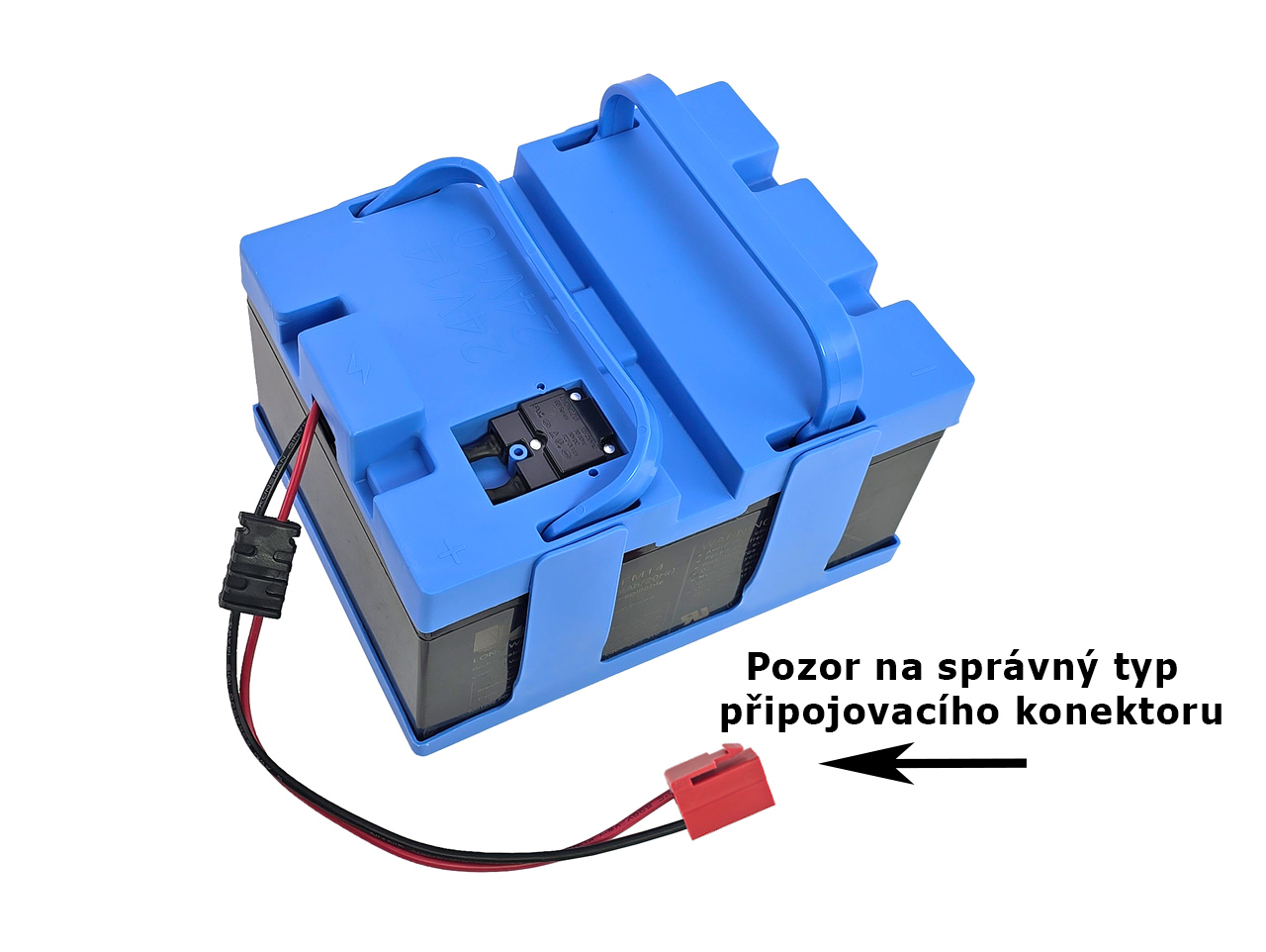 Súčasťou boxu je batéria 24V/14Ah, resetovacia poistka a konektor pre pripojenie k vozidlu.