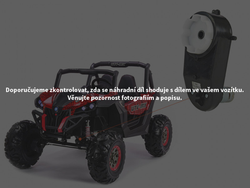 Určený pre detskú elektrickú buginu X-MAX 4x4, dĺžka 165 mm, šírka 85 mm, os 12V. Slúži na ovládanie volantu pomocou diaľkového ovládača. sa môžu líšiť. Odporúčame preto pozorne skontrolovať, či sa náhradný diel zhoduje s dielom vo vašom vozítku. Celý popis