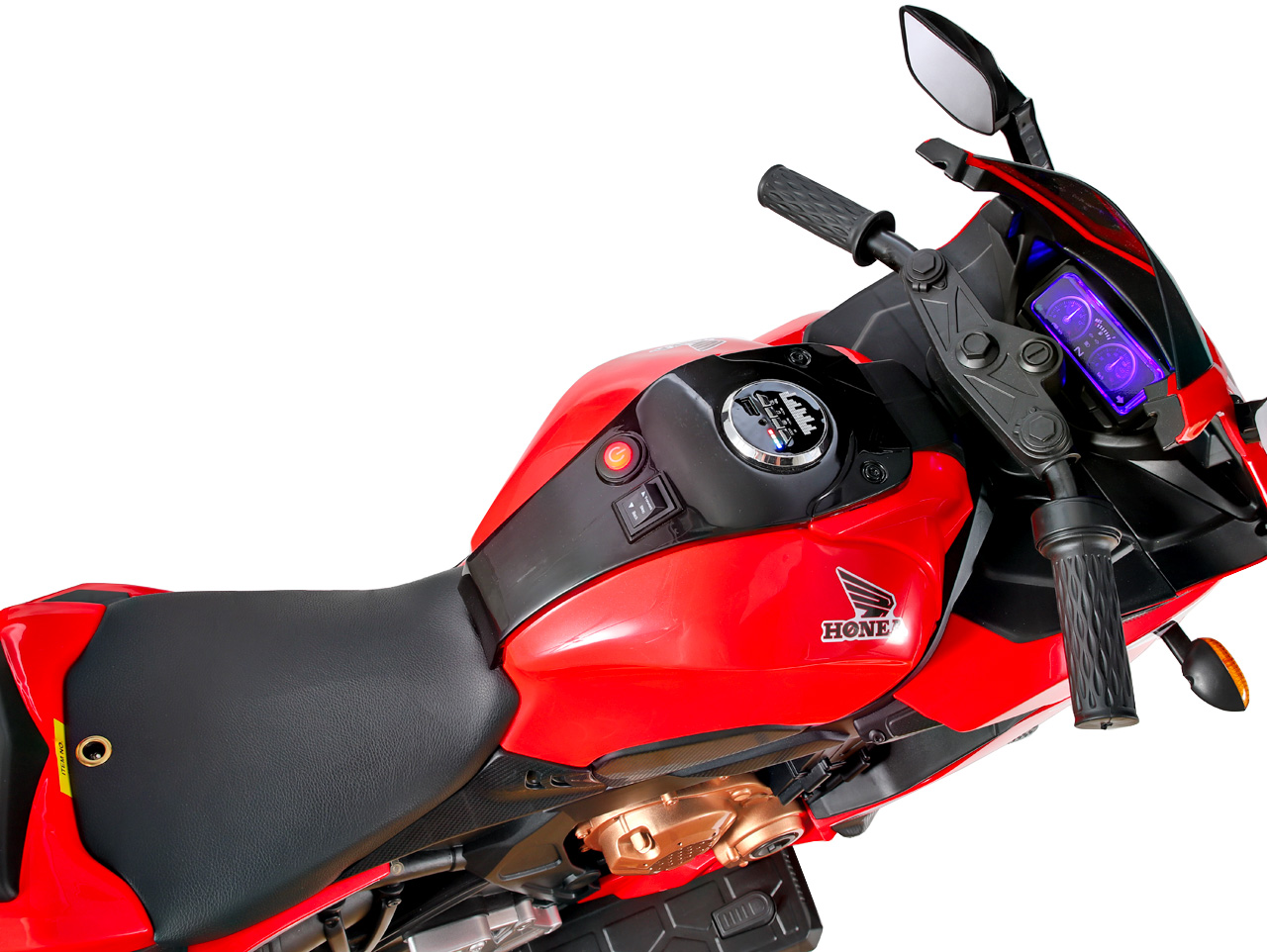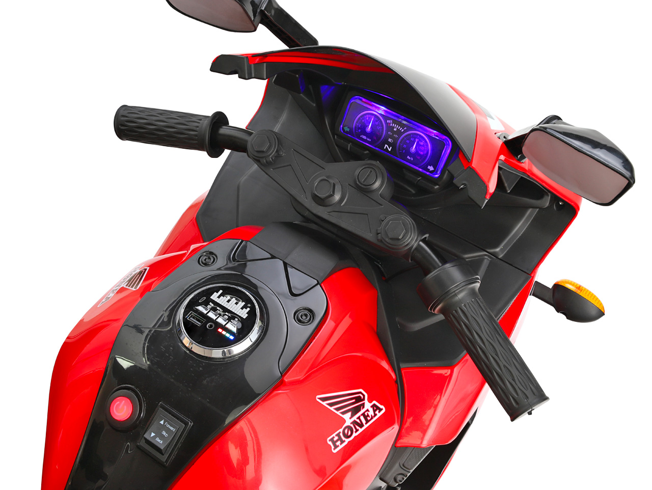 Motorka je vybavená akcelerátorom na riadidlách, imitujúcim plynovú rukoväť. Otočením rukoväte sa motorka rozbieha a zrýchľuje, pedál na stúpačke slúži ako brzda. Tento spôsob ovládania v kombinácii s robustnou športovou konštrukciou dodá na pocite realistickosti jazdy . Keď sa k tomu ešte pridá burácanie motora vychádzajúce zo zabudovaných reproduktorov , je to skoro ako ísť na naozajstnej motorke – teda aspoň z pohľadu malých vodičov. Elektrická motorka CBR 650 by preto mohla byť darčekom , s ktorým u svojho pretekára či pretekárky rozhodne zabodujete .