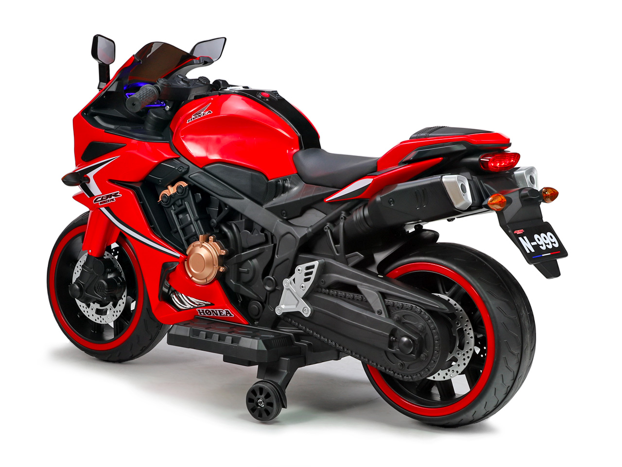 Táto krásna, športovo vyzerajúca elektrická motorka si určite zaslúži pozornosť. CBR 650 je jednou z najväčších elektrických motoriek a je preto vhodná aj pre väčšie deti. Odporúčaný vek je 3 až 8 rokov. Napriek svojim rozmerom motorka váži iba 18 kilogramov, takže ju v prípade potreby je možné stále relatívne ľahko vyniesť a zaparkovať aj na poschodí.
