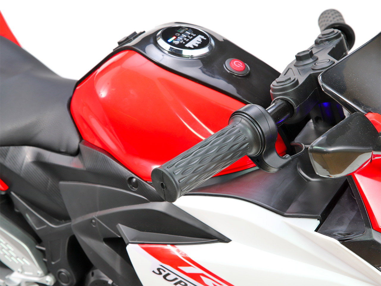 Motorka je vybavená akcelerátorom na riadidlách (plynovou rukoväťou) , ktorého otočením sa motorka rozbieha. Pedál na stúpačke tu slúži ako brzda. Na rozdiel od mnohých detských motoriek, pri ktorých nožný pedál funguje ako plyn na rozjazd, si tak deti môžu užiť realistické ovládanie ako na skutočnom motocykli. Výhoda otočného akcelerátora spočíva tiež v tom, že vodičovi umožňuje ovládať rýchlosť podľa potreby bez toho, aby bolo nutné najskôr zastaviť a prepínačom zaradiť rýchlostný stupeň.