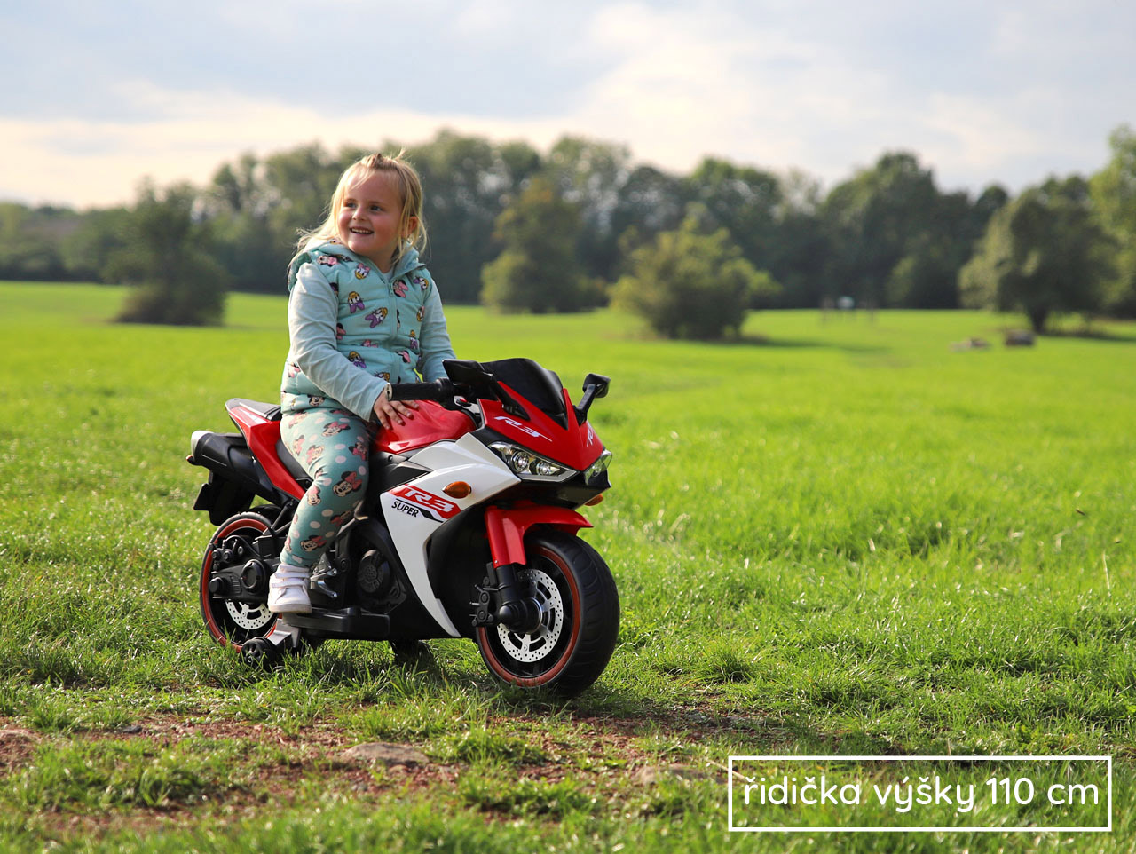 Motorka je poháňaná iba jedným elektrickým motorom, čo by nemuselo vyhovovať niektorým väčším, ostrieľaným vodičom. Pre menšie deti s hmotnosťou do 30 kilogramov bude ale úplne dostačujúce. Superšport R3 odporúčame pre deti vo veku približne od 3 do 6 rokov.