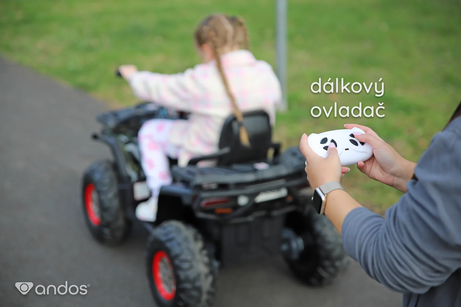Součástí čtyřkolky je dálkový ovladač, se kterým mátě dítě pod kontrolou. Ideální pro menší děti, které se s řízením teprve seznamují – vy rozhodujete, kdy je čas jet, a kdy raději přibrzdit.