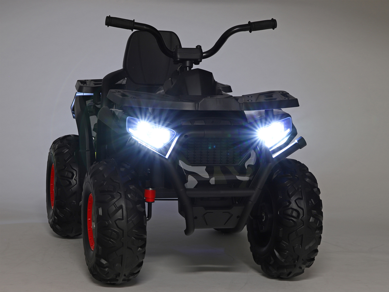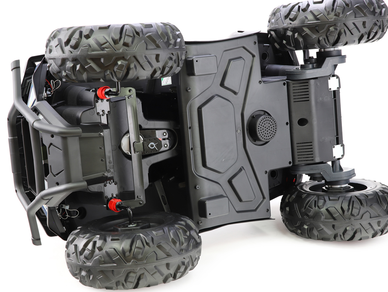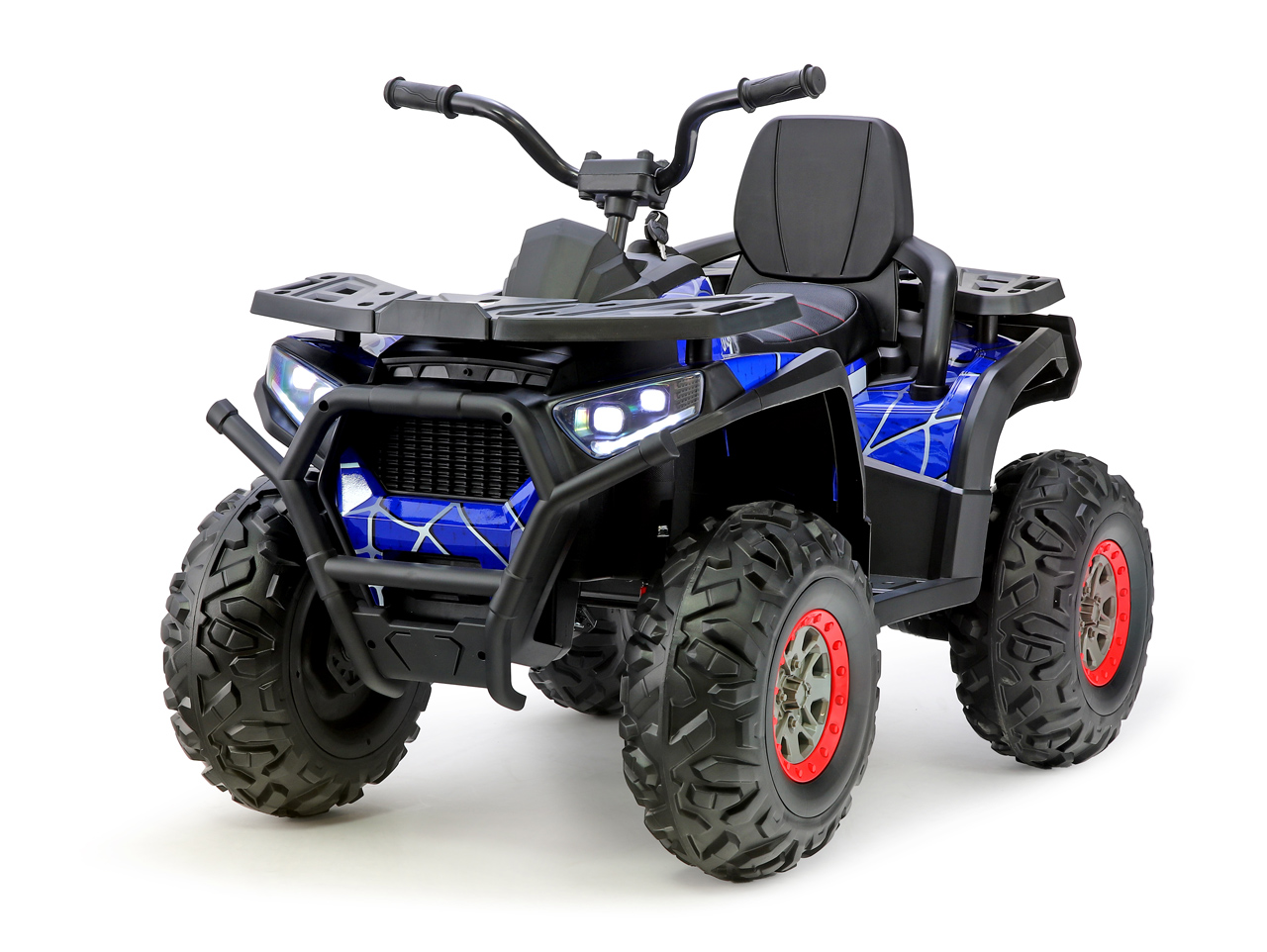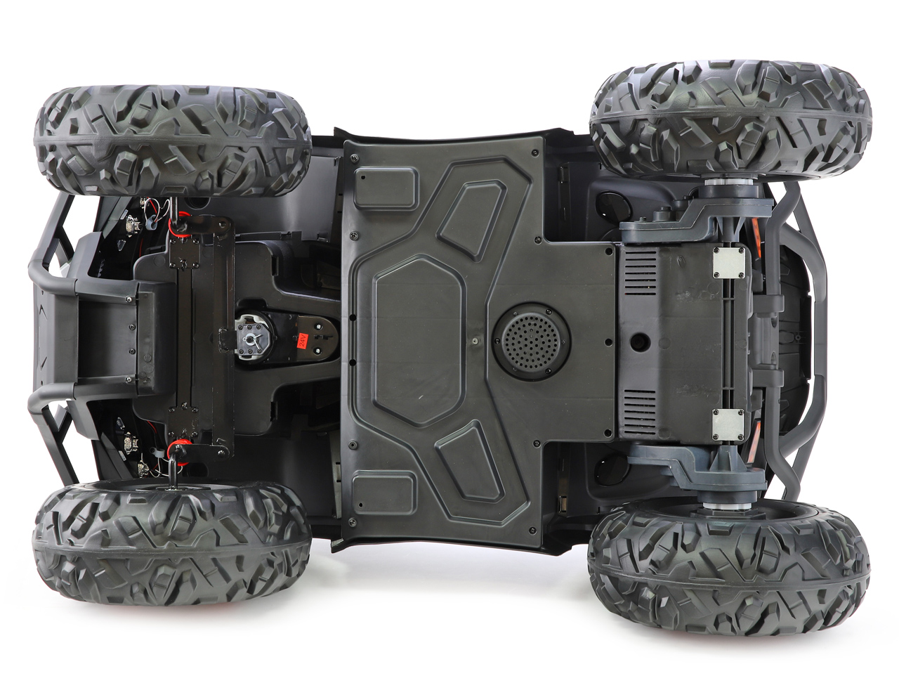 2 motory 24V/200W, 2 batérie 12V/7Ah spojené do 24V/7Ah, 2 rýchlosti na manuál / 3 na diaľkové ovládanie, rýchlosť až 8 km/h, nosnosť 50 kg, plynulý rozjazd, polstrovaná sedačka, EVA kolesá, odpruženie zadnej nápravy, predné a zadné rádio, ukazovateľ stavu batérie, štartovacie klíčky, lesklá povrchová úprava spider, opierka chrbta pre maximálnu bezpečnosť