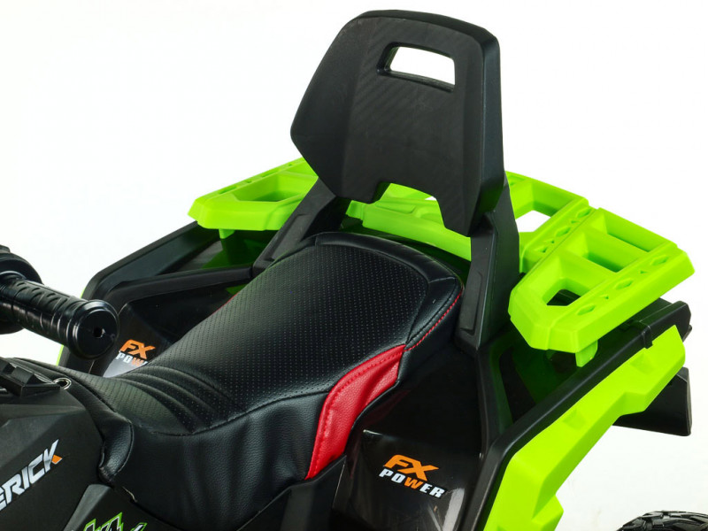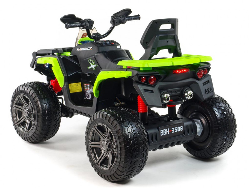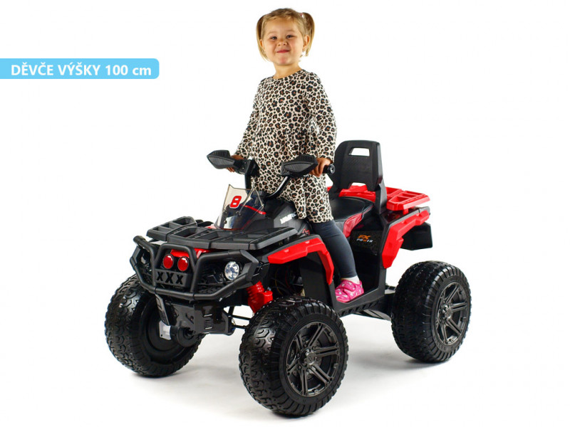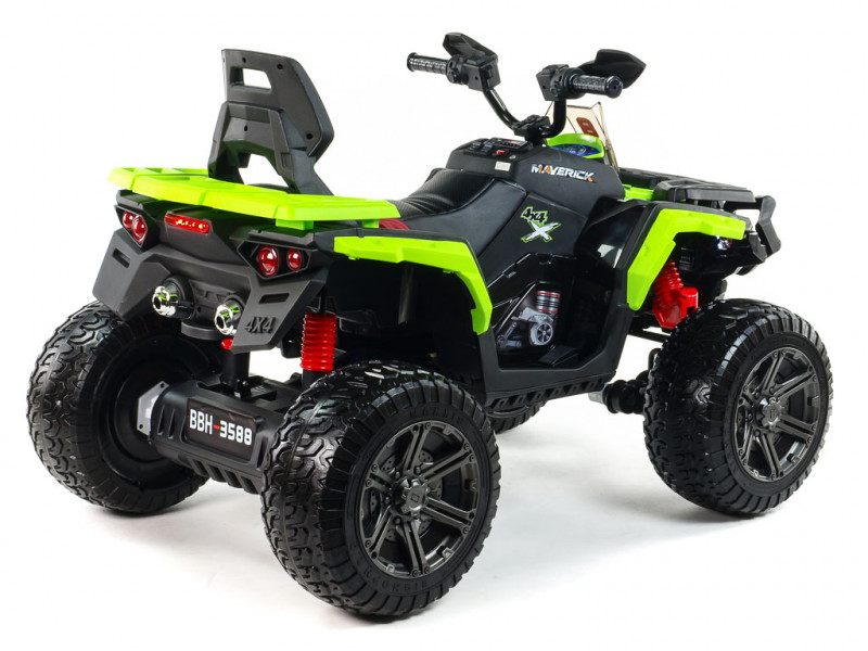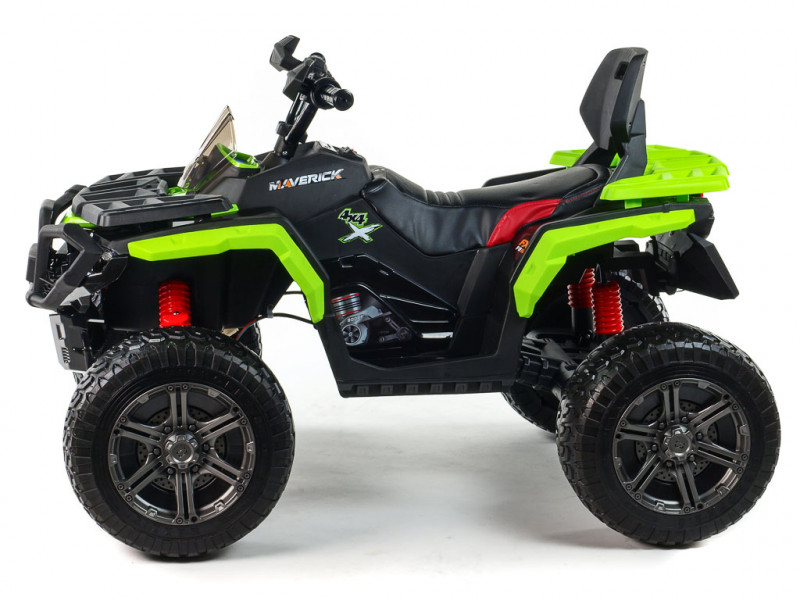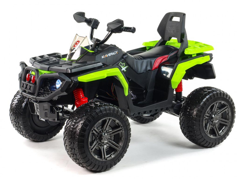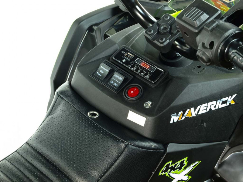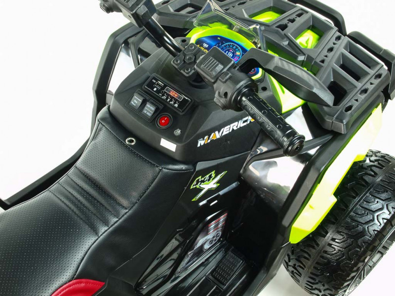 Máte doma malého pretekára a zháňate vozítko, s ktorým by sa poriadne vybláznil? S touto nadupanou štvorkolkou rozhodne nešliapnete vedľa. Hlavnou prednosťou Mavericku 4x4 je detailne prepracovaný design, ktorý verne imituje vzhľad reálnej terénnej štvorkolky. Veľkým plusom je tiež robustná konštrukcia, posadená na štyroch veľkých kolesách z EVA materiálu. Tento mäkký a pružný materiál podobný gume zaisťuje značne lepšie jazdné vlastnosti na spevnenom povrchu. V kombinácii s koženou, polstrovanou sedačkou a odpružením oboch náprav je tak o pohodlie malého vodiča postarané aj pri dlhších vychádzkach. Vozítko je vybavené štyrmi elektrickými motormi (4x 12V/45W), ktoré sa starajú o pohon všetkých štyroch kolies. Jazdí na dva rýchlostné stupne vpred, vzad, doprava, doľava.