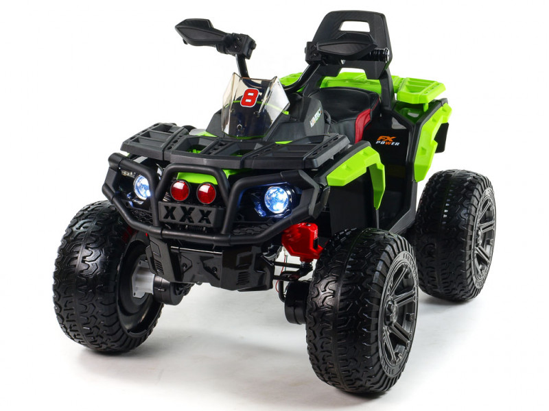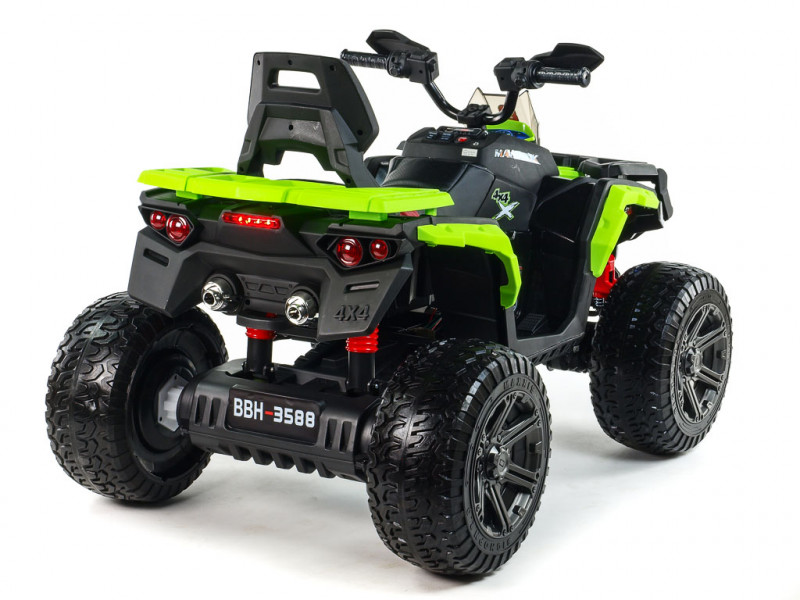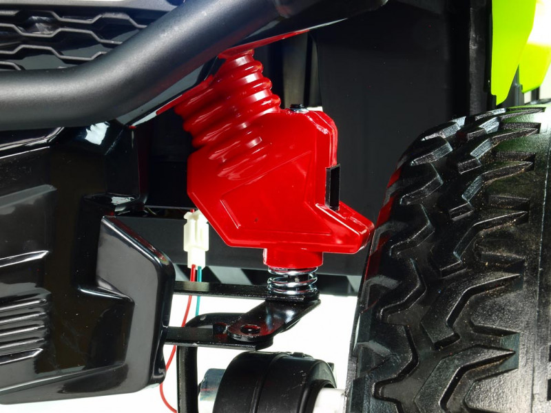 4 motory 12V/45W, batéria 12V/10Ah (možno nahradiť za silnejší 12V/14Ah), pohon všetkých kolies, 2 rýchlosti vpred/vzad, USB/SD/AUX, predné a zadné LED svetlá, zvukové efekty, klaksón, veľké EVA kolesá s kovovými ložiskami, odpruženie oboch náprav, kožená sedačka s polstrovaním, digitálny hudobný prehrávač, ukazovateľ stavu batérie Celý popis