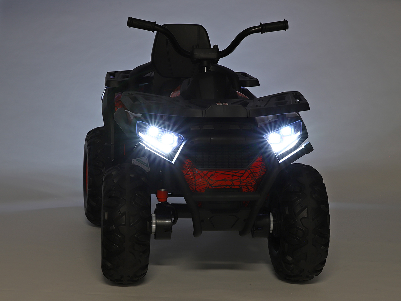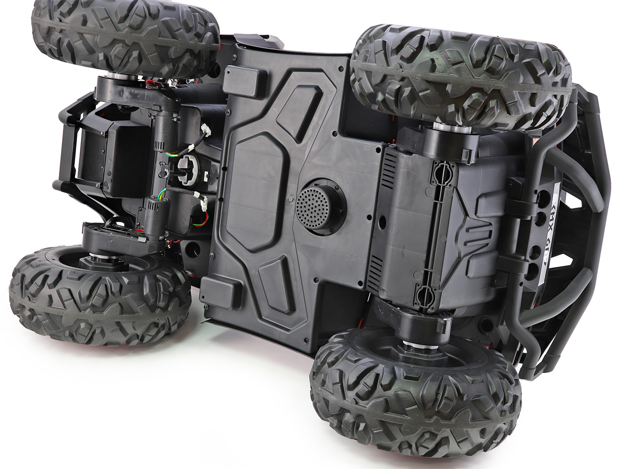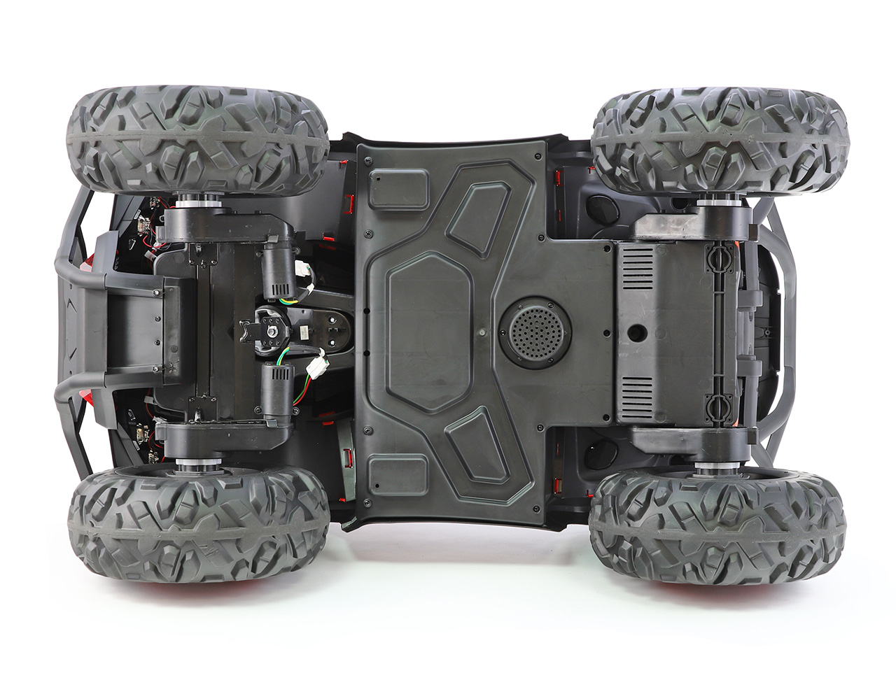 4 motory 12V/45W, 2 batérie 12V/7Ah (14Ah), pohon všetkých kolies, 2.4G diaľkové ovládanie, 2 rýchlosti na manuál / 3 na diaľkové ovládanie, plynulé rozjazdy, AUX, USB, SD karta, predné a zadné LED svetlá, zvukové efekty, EVA kolesá, polstrovaná sedačka, odpruženie zadnej nápravy, ukazovateľ stavu batérie, štartovacie klíčky, nosnosť až 50 kg, povrchová úprava Celý popis
