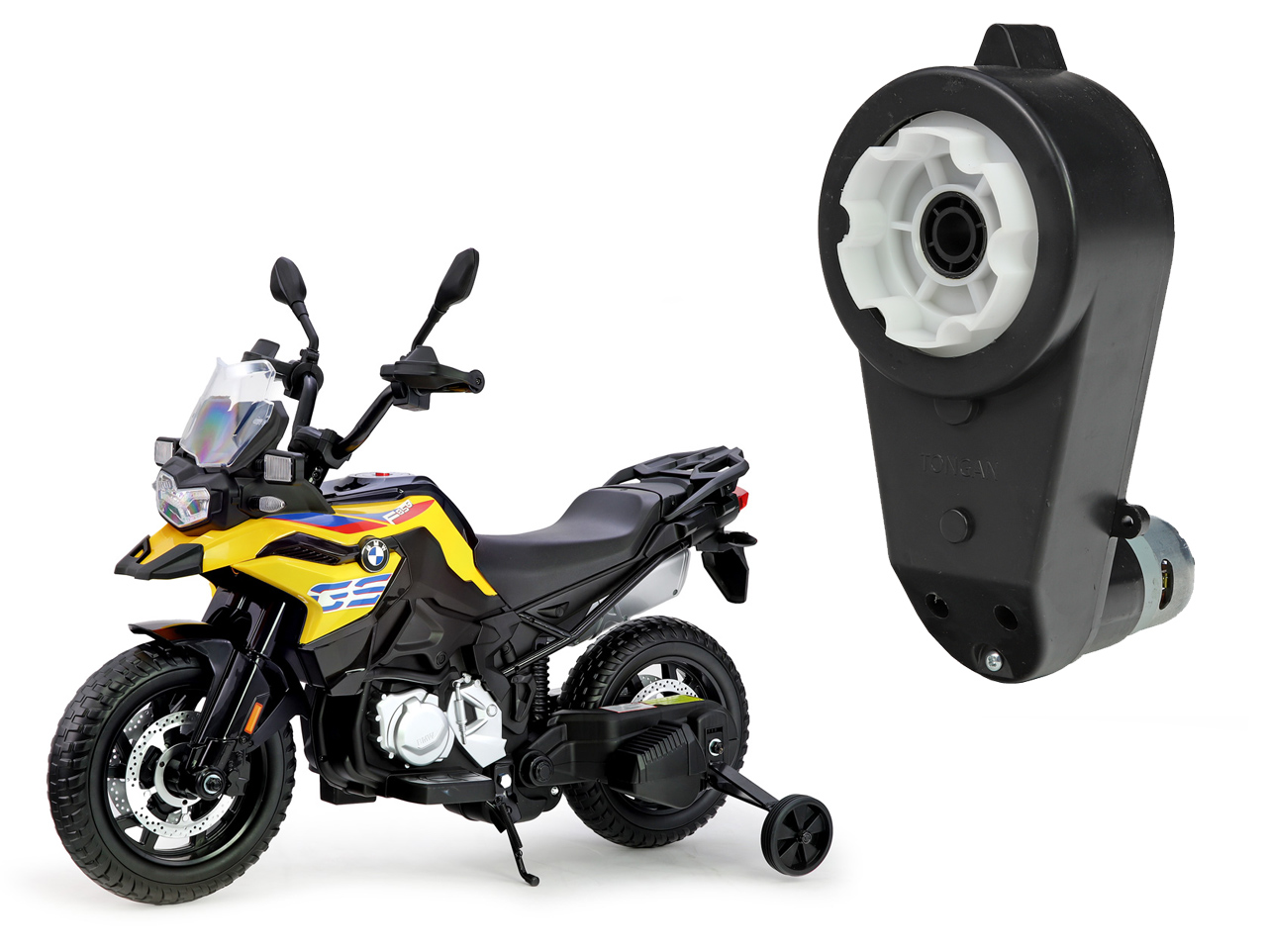 Náhradný elektrický motor s prevodovkou je určený pre detskú elektrickú motorku BMW F 850 GS Adventure a slúži na pohon kolies. Motor s prevodovkou je možné nasadiť na os s priemerom 12 mm.