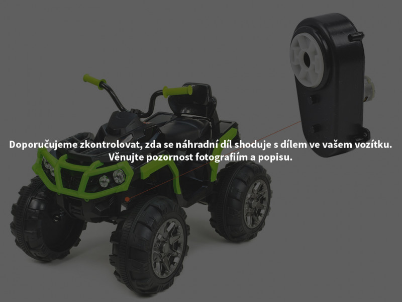 Náhradný elektrický motor s prevodovkou je určený pre detskú elektrickú štvorkolku Predator BDM0906 a slúži na ovládanie riadidiel pomocou diaľkového ovládača. Motor s prevodovkou je možné nasadiť na os s priemerom 12 mm.