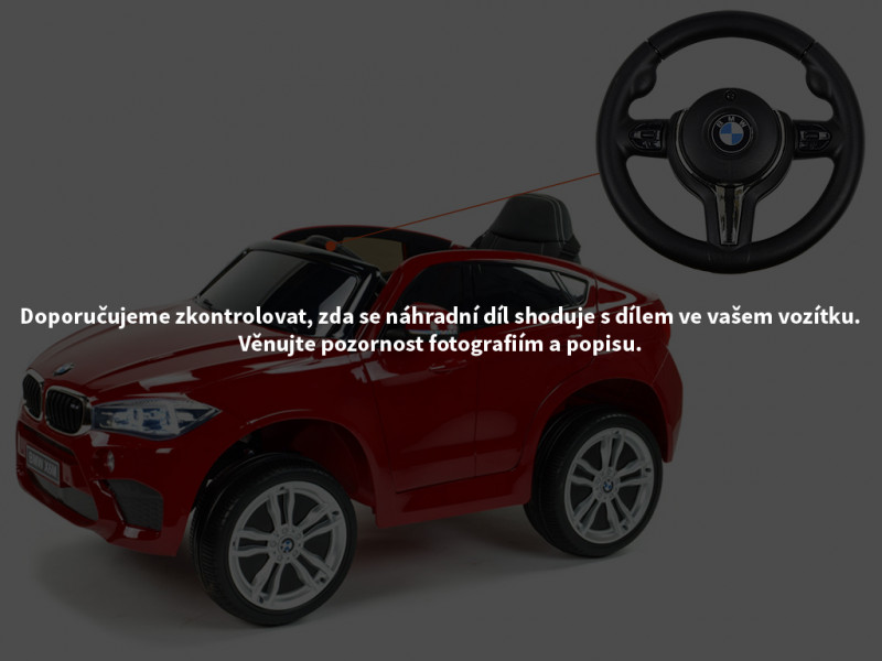 Náhradný volant je určený pre detské elektrické autíčko BMW X6 M jednomiestne. Volant je možné nasadiť na os s priemerom 12 mm.